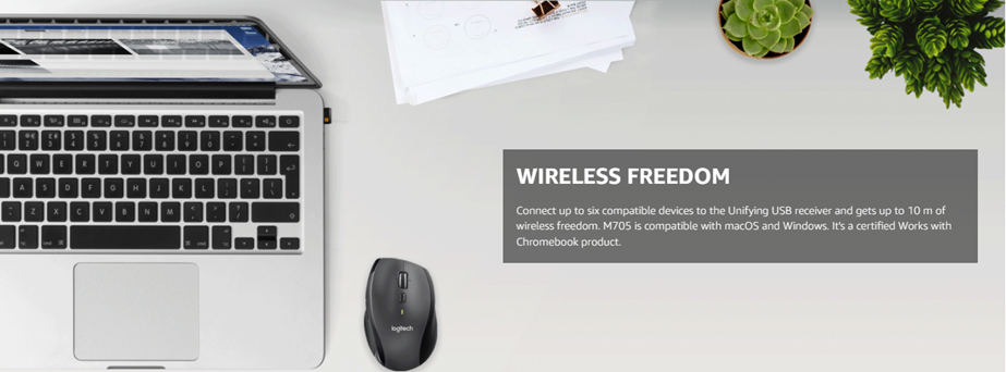 - Broad Compatibility: Mouse M705 is compatible with macOS and Windows, and is a Works with Chromebook(2) certified product