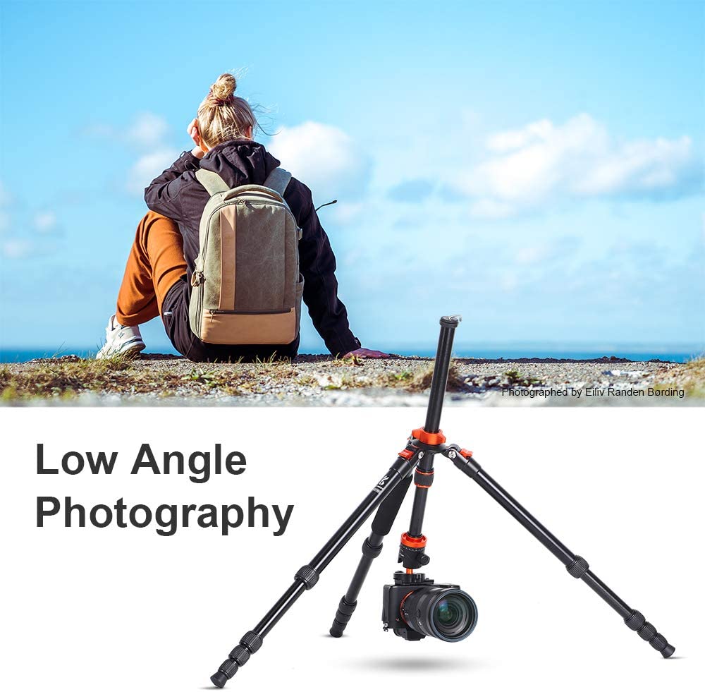 【Compact & Portable】 Quality military magnesium aluminum alloy,corrosion resistance; tripod with ball head weighs only 3.30 lbs/1.5kg, it can be 180°reflexed and folded to 16.9'', easy to put it in a backpack or suitcase when travel.