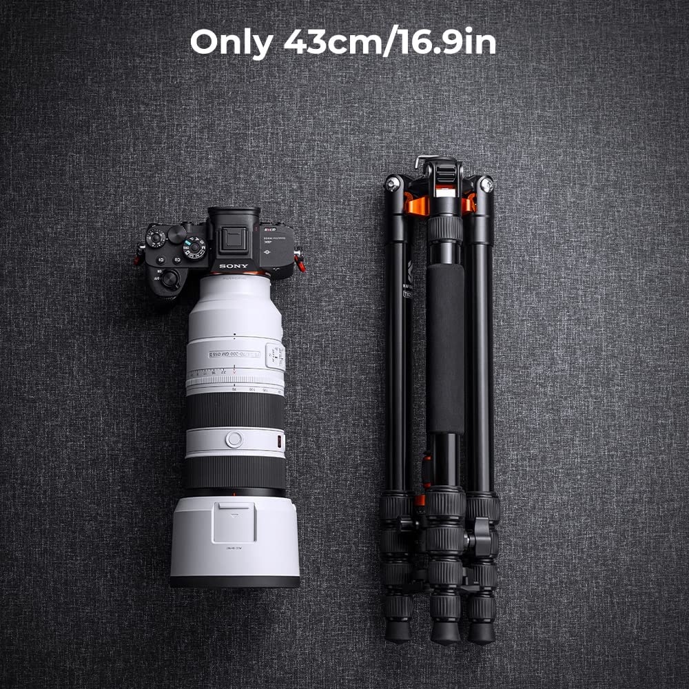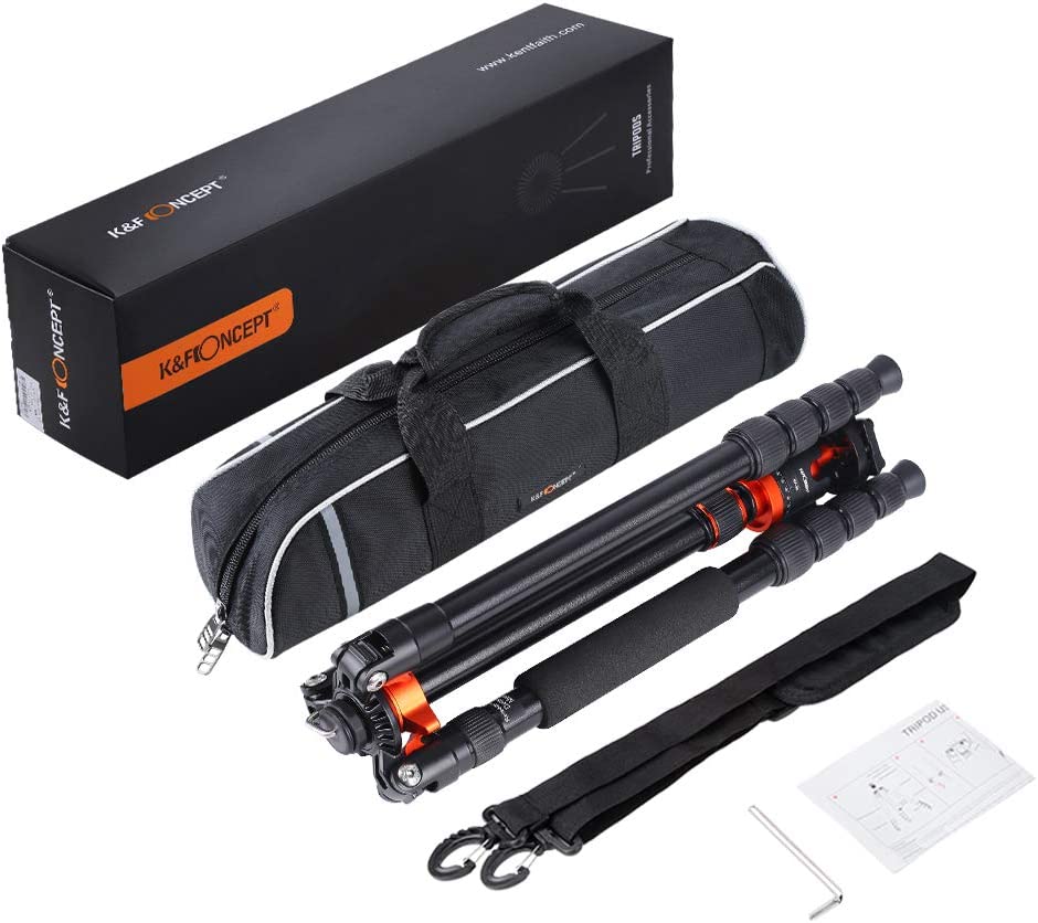 K&F Concept 68 inch /175cm Camera Tripods,Compact Travel Tripod with Monopod,10kg/22lbs Load Capacity 360° Panorama Ball Head Compatible with DSLR Cameras K255A4+BH-28L (TM2515M1)
