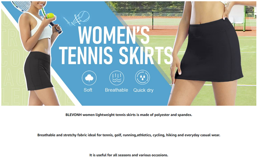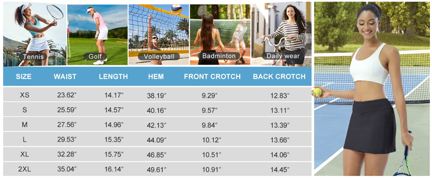 Occasions: Athletics skorts are great for tennis ,golf ,swimming, volleyball pickball,badminton,running,jogging biking,beach and casual.
