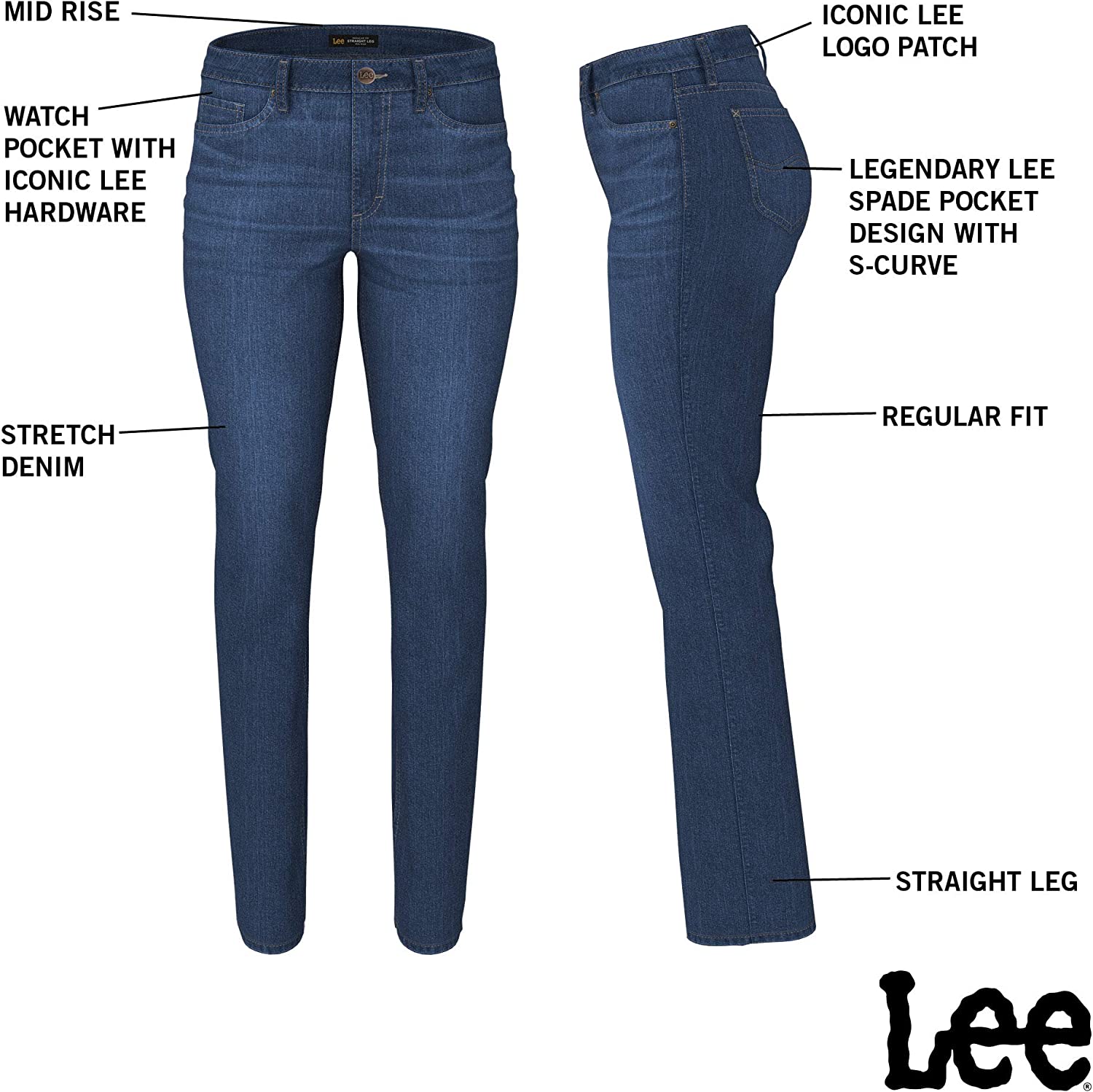 LEE Women's Plus Size Regular Fit Straight Leg Jean. These straight leg jeans feature regular fit with a mid rise and a skimming cut through the seat and thigh. This comfortable, durable denim stands the test of time with classic washes and an everyday cut made for work or the weekend. Measurements: leg opening: Plus Size 16-inches, inseam: Plus Size 30-inches. BRAND HERITAGE: Just like our founder, H.D. Lee, our passion is helping can-do people do more. We are committed to designing clothing that conforms to your body, allowing you to move through life freely. We help you chase the things that bring you joy and laughter. The things that make you fearless and hopefully because your passion is what makes you unique. And what moves you, moves us. Move your Lee.