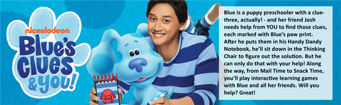 Step by step and clue by clue – it’s Blue’s Clues & You! Kids will love cuddling with Blue and Magenta from Nickelodeon’s hit preschool show, Blue’s Clues & You! Each adorable small plush puppy comes in the perfect size for kids to take on all their play dates. Blue and Magenta are made of super soft fabrics and looks just like they do on the show, making them the perfect gift for any clue-finding kid. Assortment includes Blue and Magenta. Bring home Blue and the rest of the Blue’s Clues & You! toys to help your little clue-finder use their mind, take a step at a time, and do anything that they want to do. Ages 3+