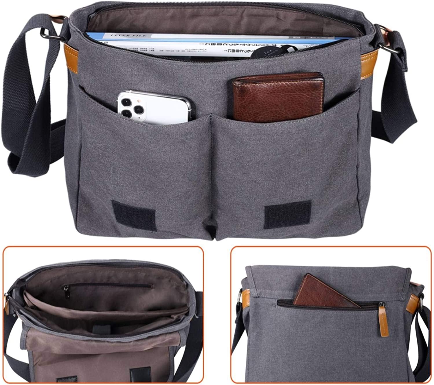 Estarer Messenger Bags for Men Women,13-14 Inch Laptop Water Resistant Shoulder Crossbody Bookbag Canvas Satchel