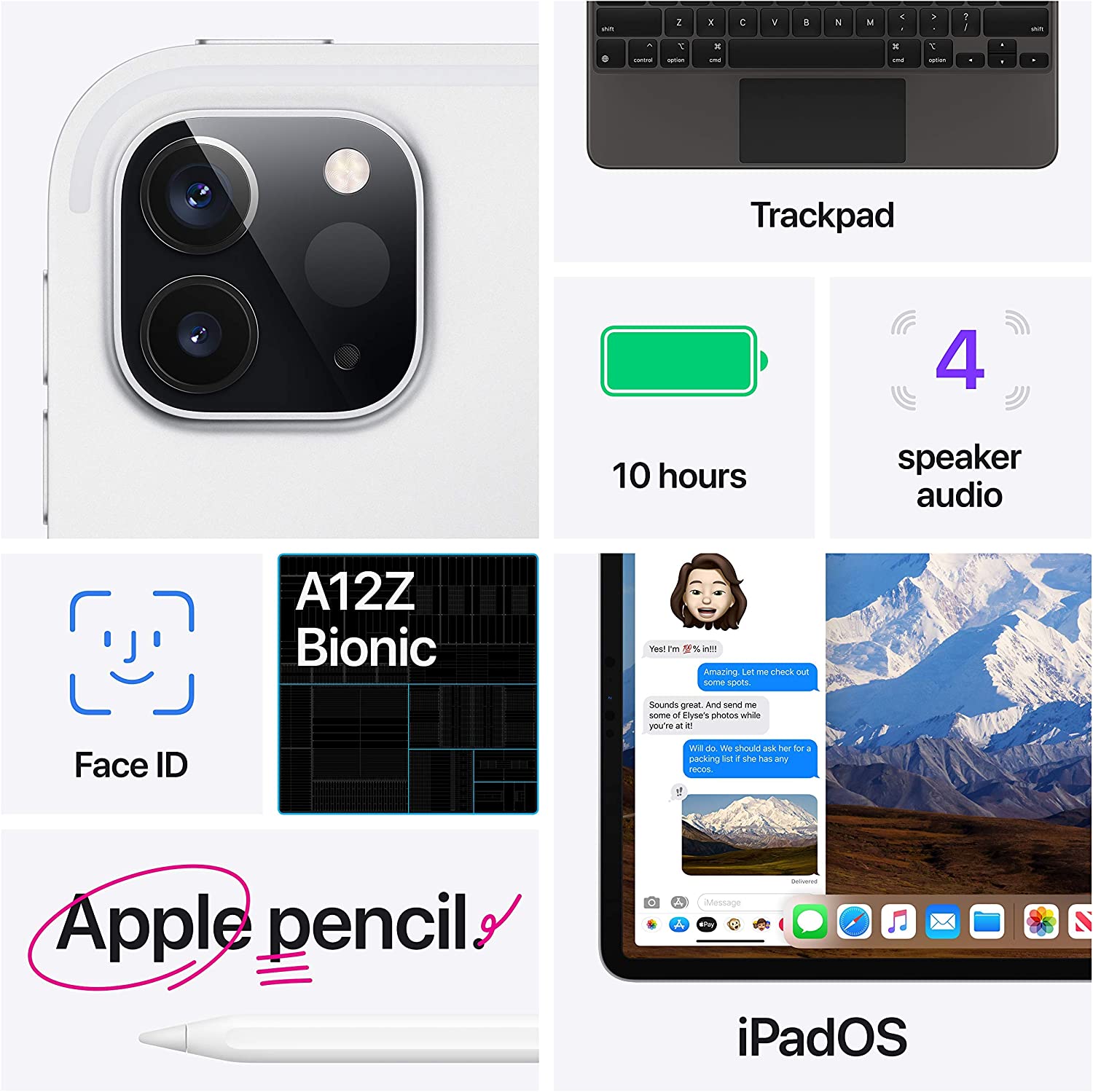Further improving the 12.9" iPad Pro, Apple has added a few new advancements for upgraded performance, entertainment, and usability. Replacing the A12X processor, the A12Z Bionic has performance rivaling that of laptops available today, in addition to an eight-core graphics processor that handles everything from games to 4K video editing. Moreover, it's still paired with a Neural Engine chip for advanced machine learning. The iPad Pro's display features the same Liquid Retina technology found on iPhones, and has a 2732 x 2048 resolution, ProMotion technology, wide color and True Tone support, as well as a 600 cd/m2 brightness rating. On the rear, Apple has added a 10MP ultra-wide camera, enabling different perspectives and multi-camera use. A newly added LiDAR scanner, which determines distance by determining light reflection, further readies possibilities for augmented reality and beyond. With "Pro" in its name, the iPad now features five studio-quality microphones that capture clean audio and the quietest details. The combination of the pro cameras, audio enhancements, and its large display makes the iPad Pro a suitable mobile studio option for creative users. On the software side, iPadOS now supports trackpad inputs for an easier time navigating including mult-touch gestures. Lastly, Apple has opted for a USB Type-C connector rather than its traditional Lightning connector for additional features and broader compatibility with other devices. The new iPad Pro has been completely redesigned and packed with Apple's most advanced technology. It will make you rethink what iPad is capable of. With new, intuitive gestures, getting around is simple. The Liquid Retina display goes from edge to edge. A12X Bionic is the smartest, most powerful chip Apple has ever made. It has the Neural Engline, which runs five trillion operations per second and enables advanced machine learning.