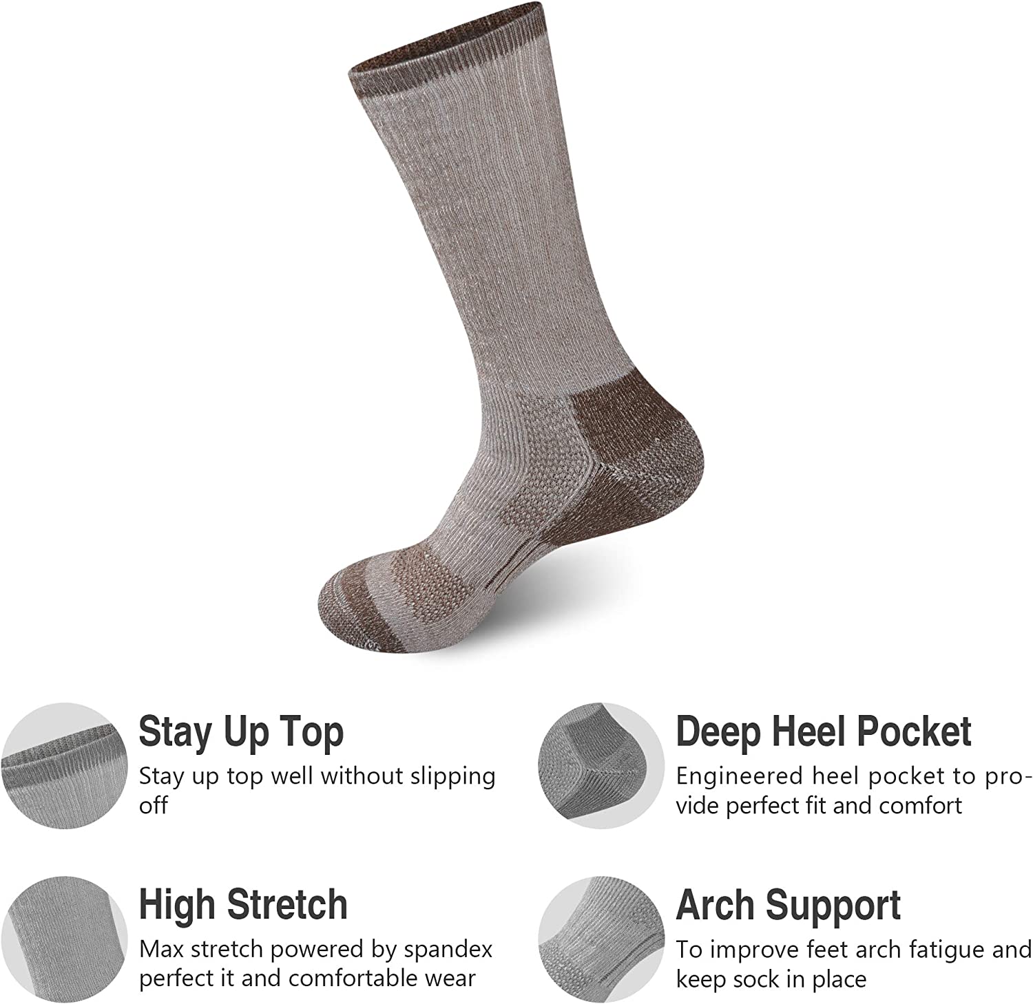 GKX Men's Merino Wool Moisture Wicking Outdoor Hiking Heavy Duty Work Cushion Crew Socks