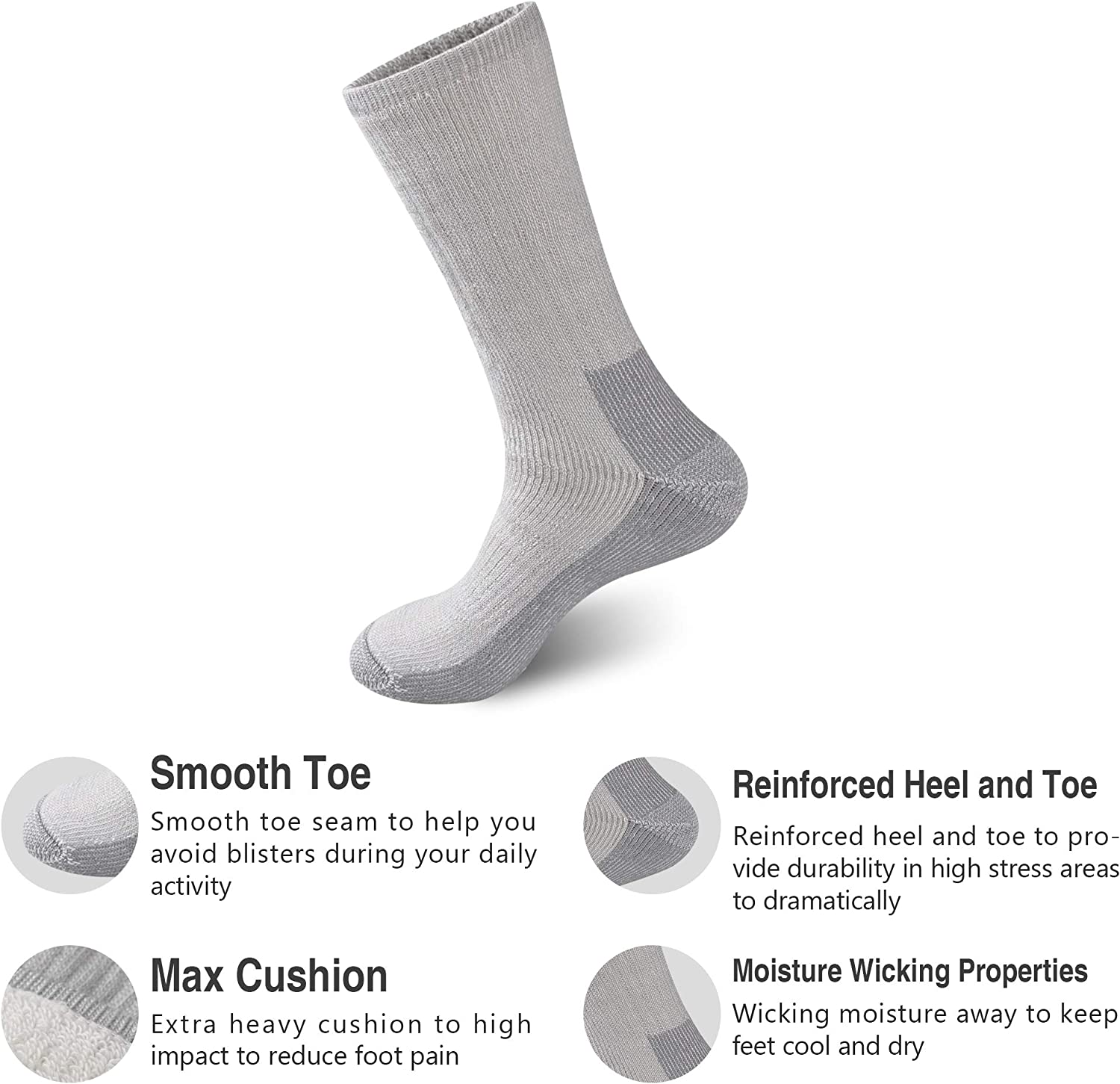 GKX Men's Merino Wool Moisture Wicking Outdoor Hiking Work Boot Heavy Cushion Crew Socks
