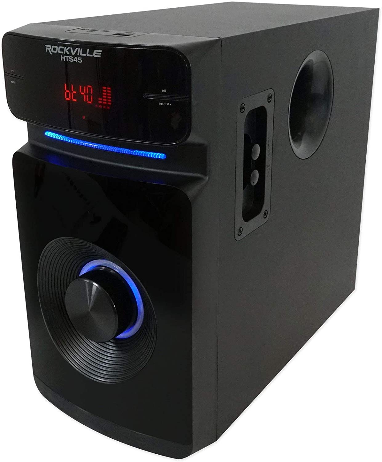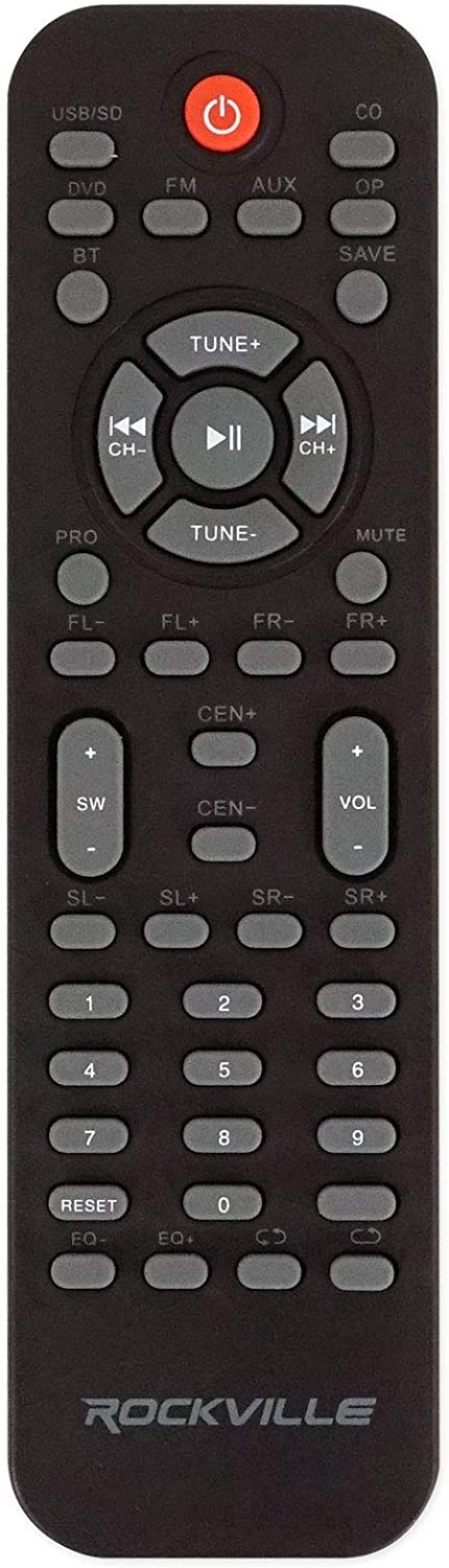 Rockville HTS45 800w 5.1 Channel Bluetooth Home Theater Audio System+Subwoofer. 800 Watts Peak Power. 400 Watts Program Power. 200 Watts Continuous RMS Power. 5.25” Subwoofer with Built-In Receiver. 3” Center Channel Speaker. 3” Full Range Front Speakers. 3” Full Range Rear Channel Speakers. Top Quality MDF Wood Cabinets with Plastic Front Panels. Built-In FM Receiver with Amazing Reception. 5 Preset Equalizer curves. You can independently control the volume of each speaker and the subwoofer. Bluetooth v5.0. Optical Input. Coaxial Input. USB Input (max file size 64Gb). SD Input (max file size 64Gb). 2 ¼” MIC Inputs with Echo function for karaoke. 5 RCA Audio Outputs connect to the 5 speakers