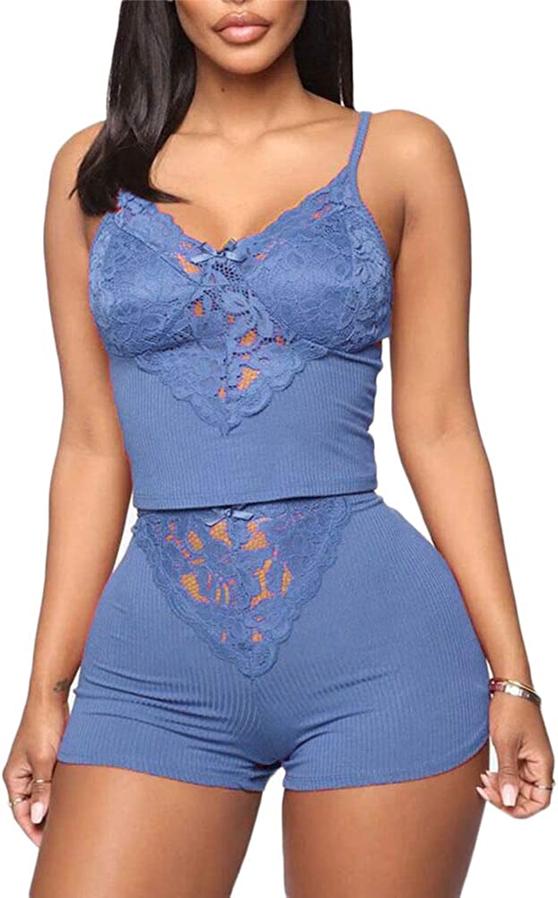 Pajama Top: Sleeveless pajama set and V-neck with lace trim, adjustable strap.Classic PJ sets in casual style , easy fit and lightweight