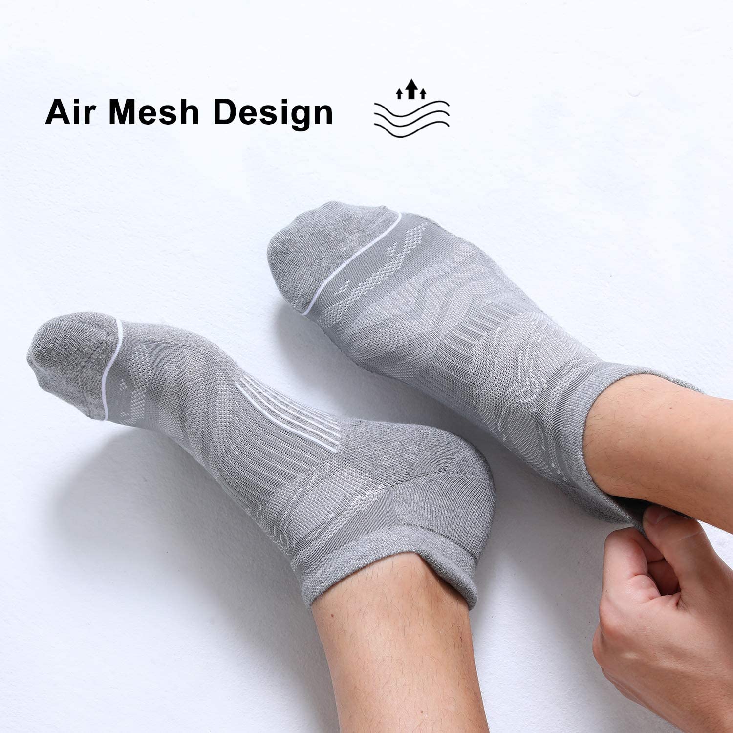 - 【Breathable- Cool & Dry】: Air mesh design, combed cotton and spandex fabric in our Running Socks For Men help quickly absorb moisture and release sweat. Stay fresh when exercise, jogging or walking.