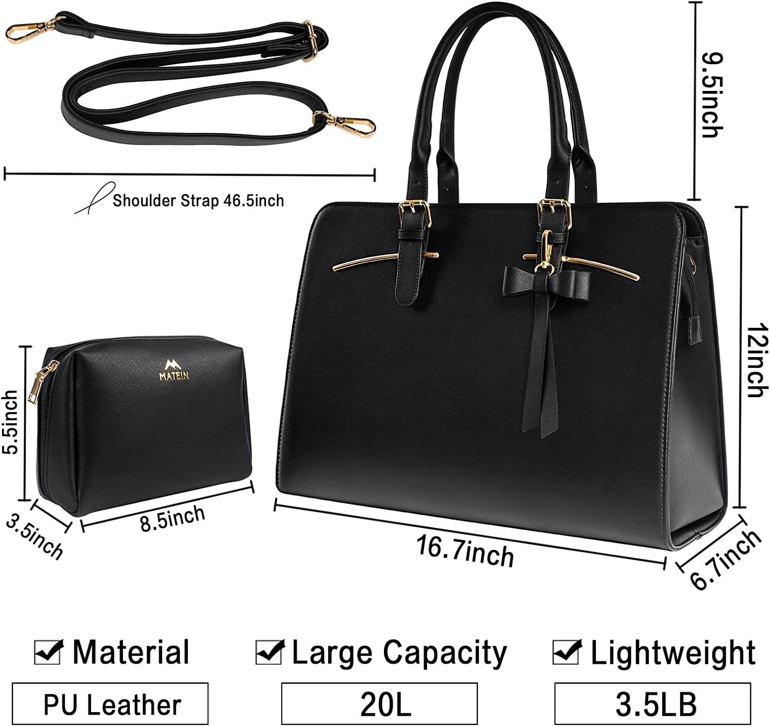 • Waterproof Material & Bottom Rivets: This women black tote bag is 16.7 x 6.7x 12 inches. It's made of high-quality cross pattern PU leather and polyester lining, is water-resistant, scratch-resistant, wear-resistant and anti-wrinkle. Make this durable satchel bag for women can be cleaned easily. Reinforced flat bottom with 4 rivets will reduce friction and scrape of bottom of the women business bag while daily use, last longer than other women computer tote bags