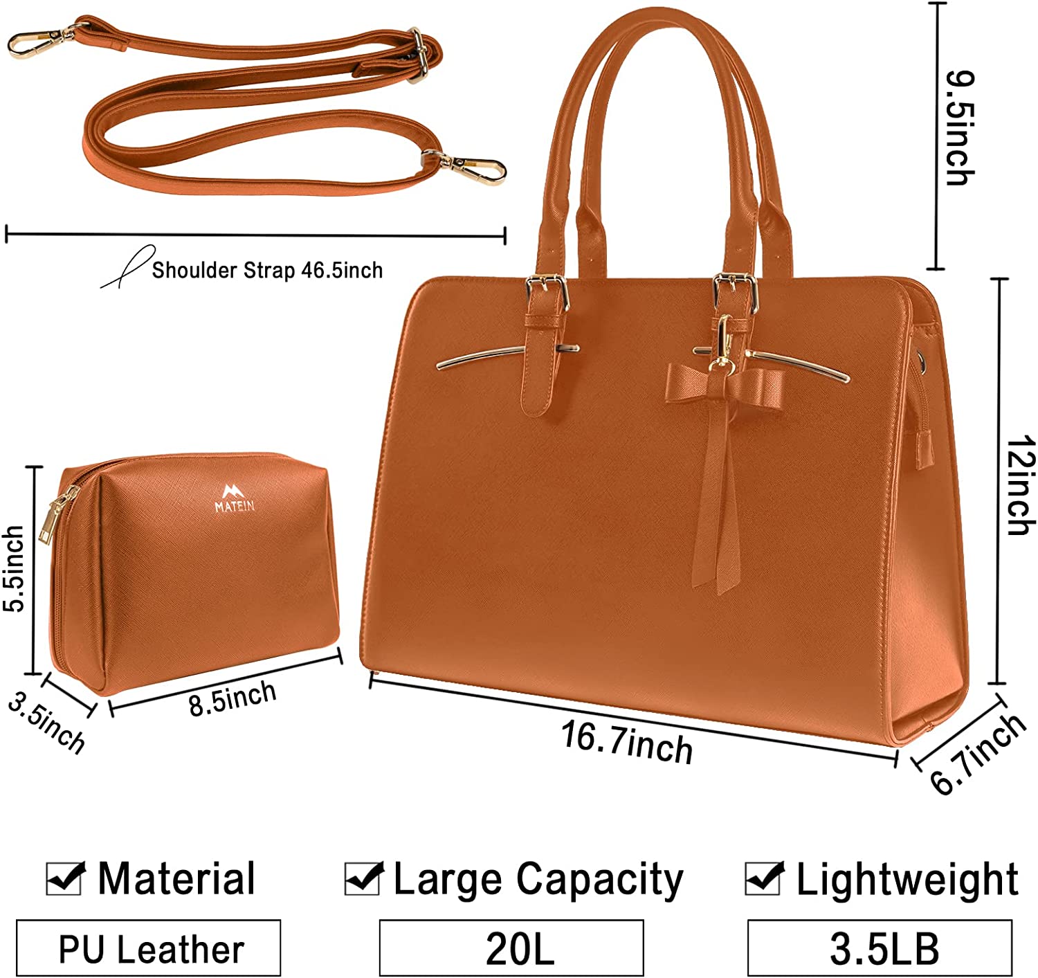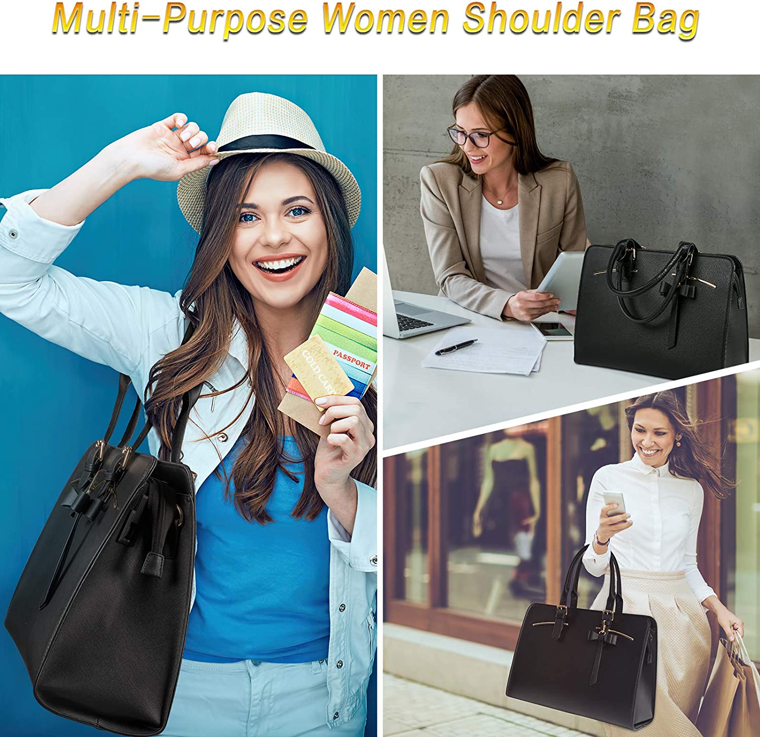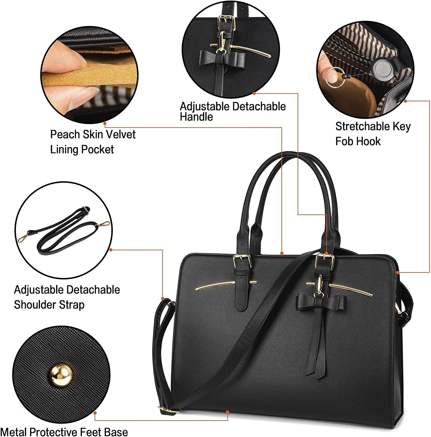 • Many Pockets: The laptop bag for women has an independent laptop compartment fits under 15.6 inch laptop and Ipad/tablet, a large main pocket designed for documents, gadgets and more. A middle opened pocket and a middle zippered pockets for all your personal stuff, two small square pockets and a small zipper pocket for your phone or wallet. There also has a side-pocket for power bank inside, an anti-theft pocket outside of this women handbag, Mother's Day gifts for women