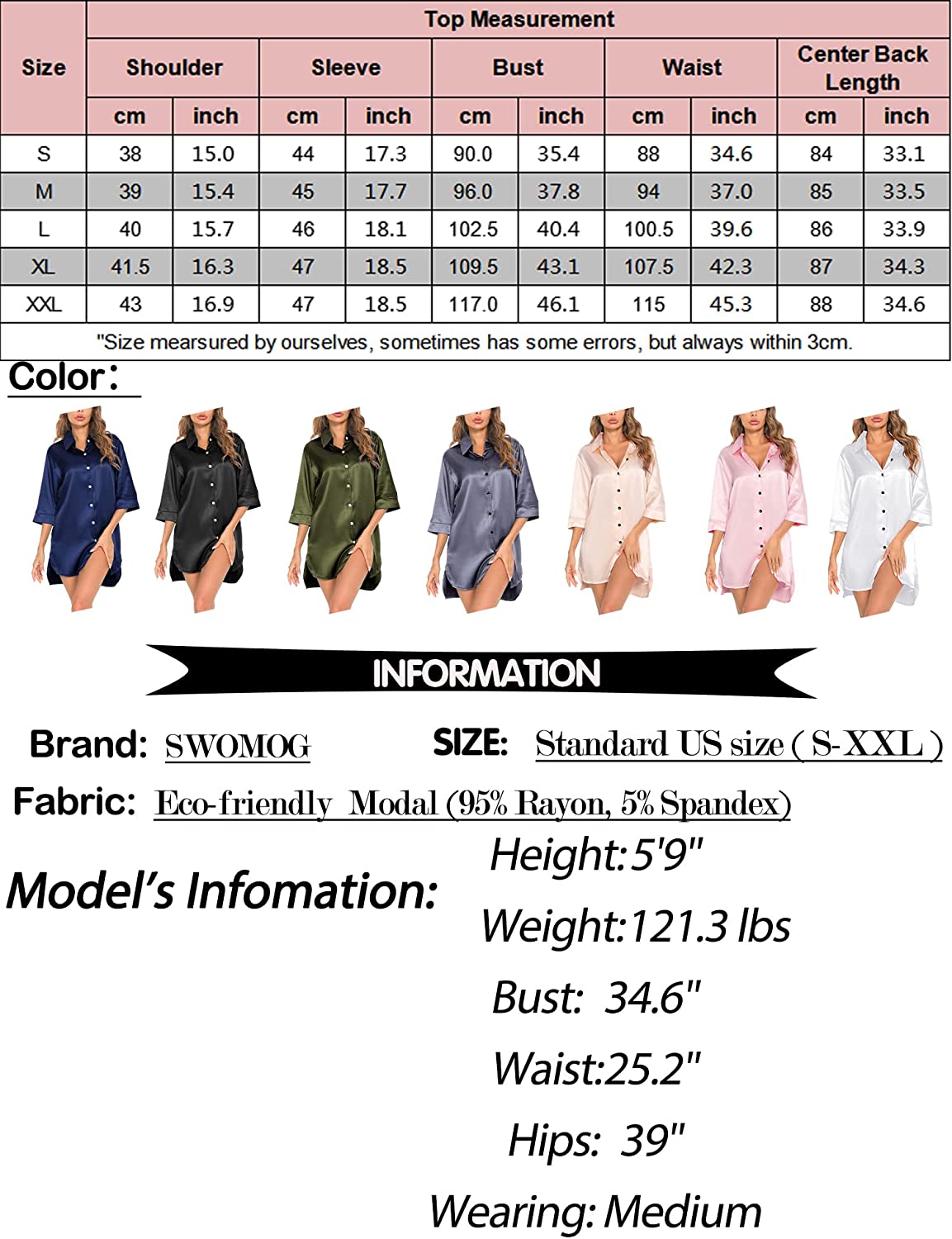 ?SILKY SMOOTH FABRIC:The womens satin night shirts made of high quality fabric,Which is soft,lightweight yet durable,skin friendly and breathable,keeping you cool and comfortable in any season as you sleep or relax