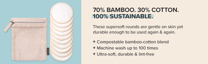 70% BAMBOO. 30% COTTON. 100% SUSTAINABLE: These sustainable alternative rounds are gentle on skin & the planet. Suitable for all skin types—even sensitive skin.
