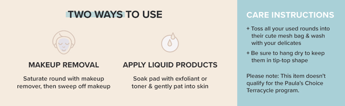 APPLY LIQUID PRODUCTS: A durable blend of cotton & bamboo gives these facial rounds enough weight to hold & apply liquid products like facial toner or exfoliants–without the waste.