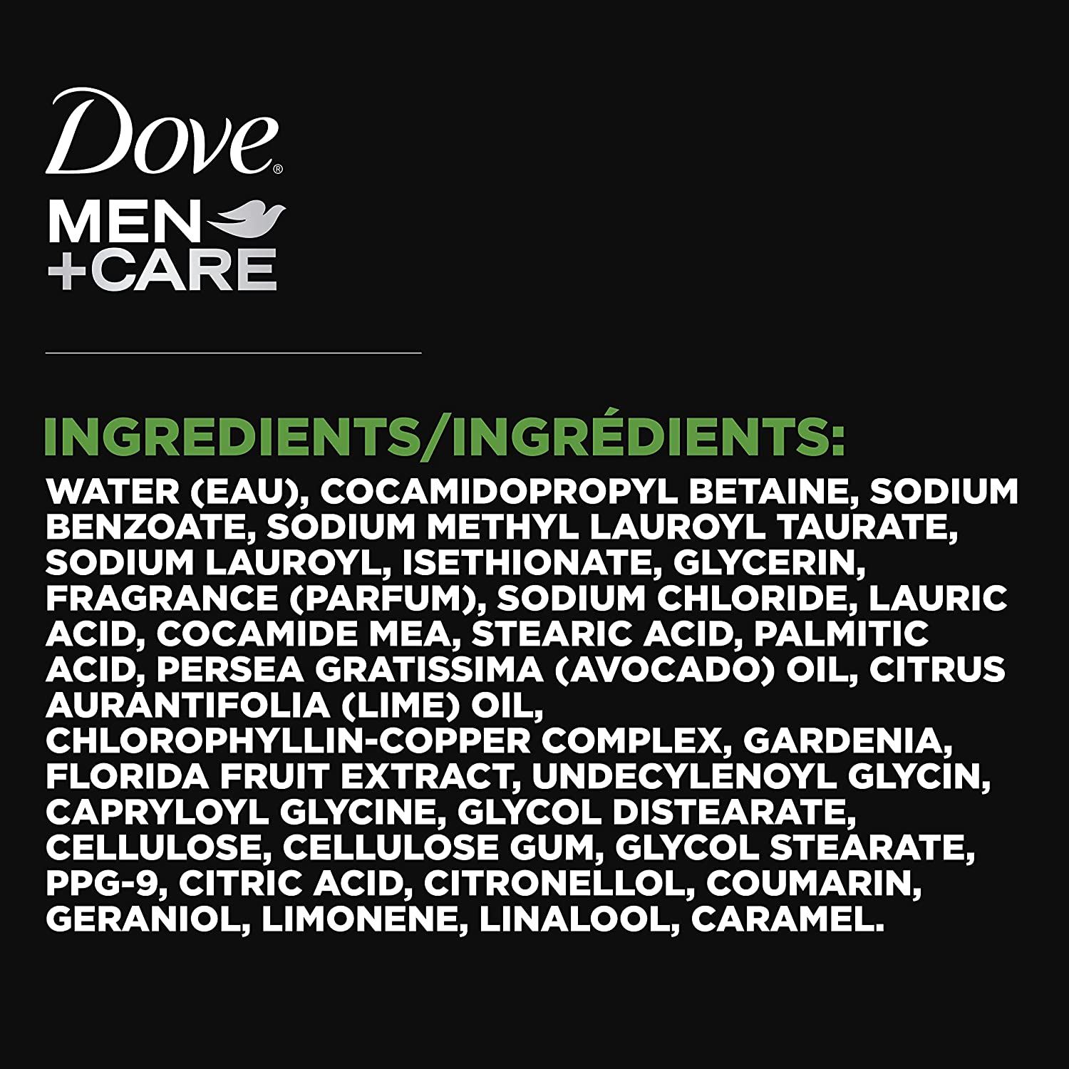 Dove Men + Care Lime + Avocado Oil Body Wash for men hydrates skin while offering you a relaxing and invigorating shower experience. Made with natural essential oils and plant-based cleansers, this body wash washes away tough germs and moisturizes your skin. This essential shower gel delivers clean and comfortable skin in just one shower. This body wash does what it promises: it's tough on odor, but not on your skin. Hit the reset button for your body and mind from the moment you apply it and take in the natural scents of Lime and Avocado Oil. Sulfate-free and cruelty-free, this natural inspired body wash not only provides care for your skin, but also for the planet. Following Dove's global commitment to more sustainable packaging, we've designed every bottle to be recyclable and made with 100% recyclable plastic. And we're proud of what we've made. If you're looking for further proof, complete your grooming routine with the entire Dove Men + Care naturals range. Pair this body wash with the Dove Men + Care Eucalyptus + Birch Anti-Perspirant or the Dove Men + Care Eucalyptus+ Birch Dry Spray. Or try our Dove Men + Care Body Wash, available in purifying scents like Charcoal + Clove and refreshing ones like Eucalyptus + Cedar.