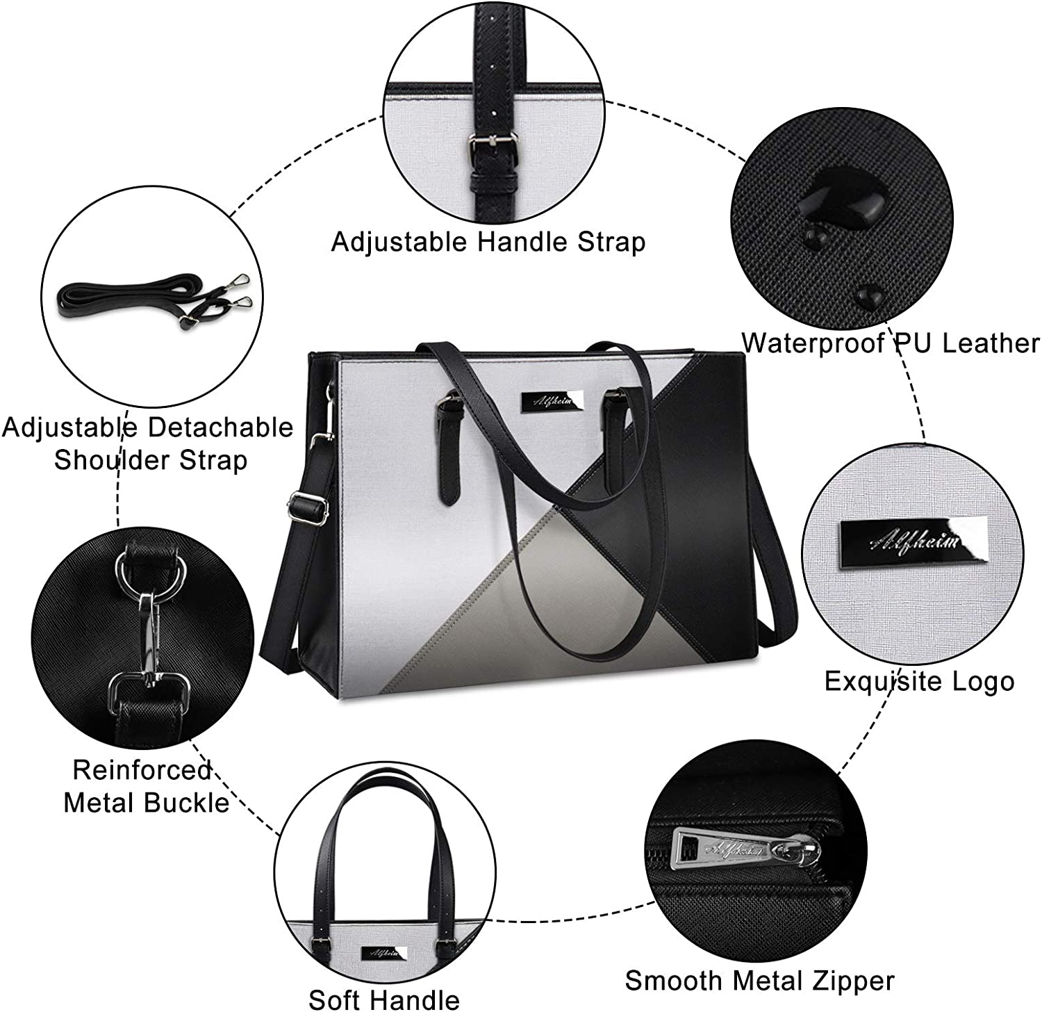 【Multifunctional Handbag】With a detachable and adjustable shoulder strap, this women's laptop handbag is not only a laptop bag or tote handbag but also a shoulder bag or even messenger briefcase bag. It can be worn with all different kinds of outfits, definitely meet your demands for any occasions such as work, business trip, meeting, college, shopping or daily use.