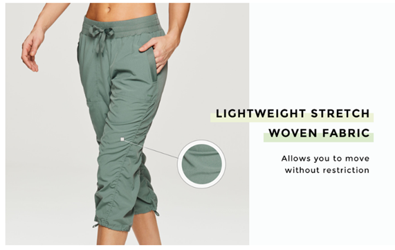 RBX Active Women's Fashion Lightweight Stretch Woven Body Skimming Drawstring Capri Pant