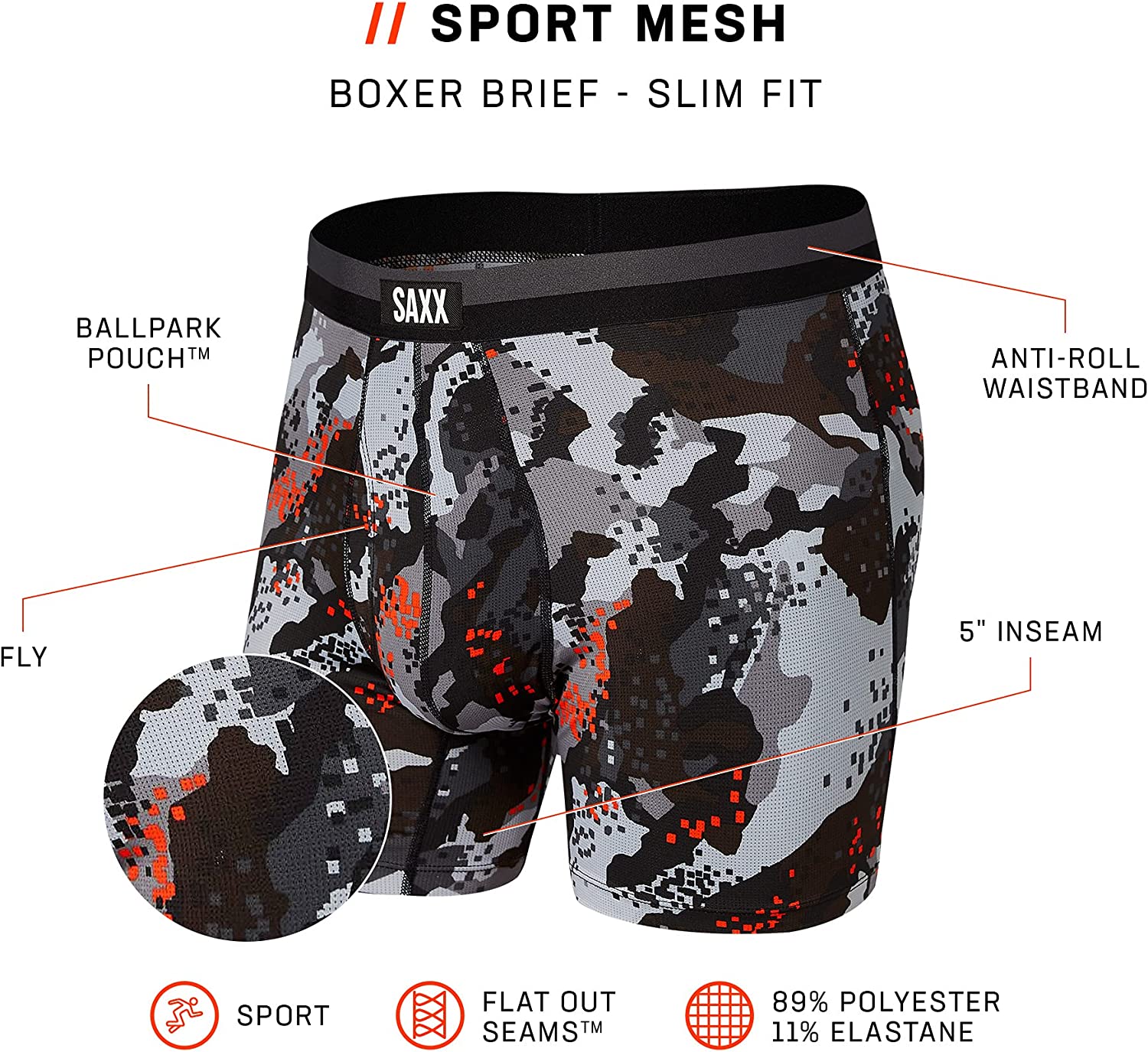 SAXX Men's Underwear - Sport Mesh Boxer Brief Fly with Built-in Pouch Support - Underwear for Men