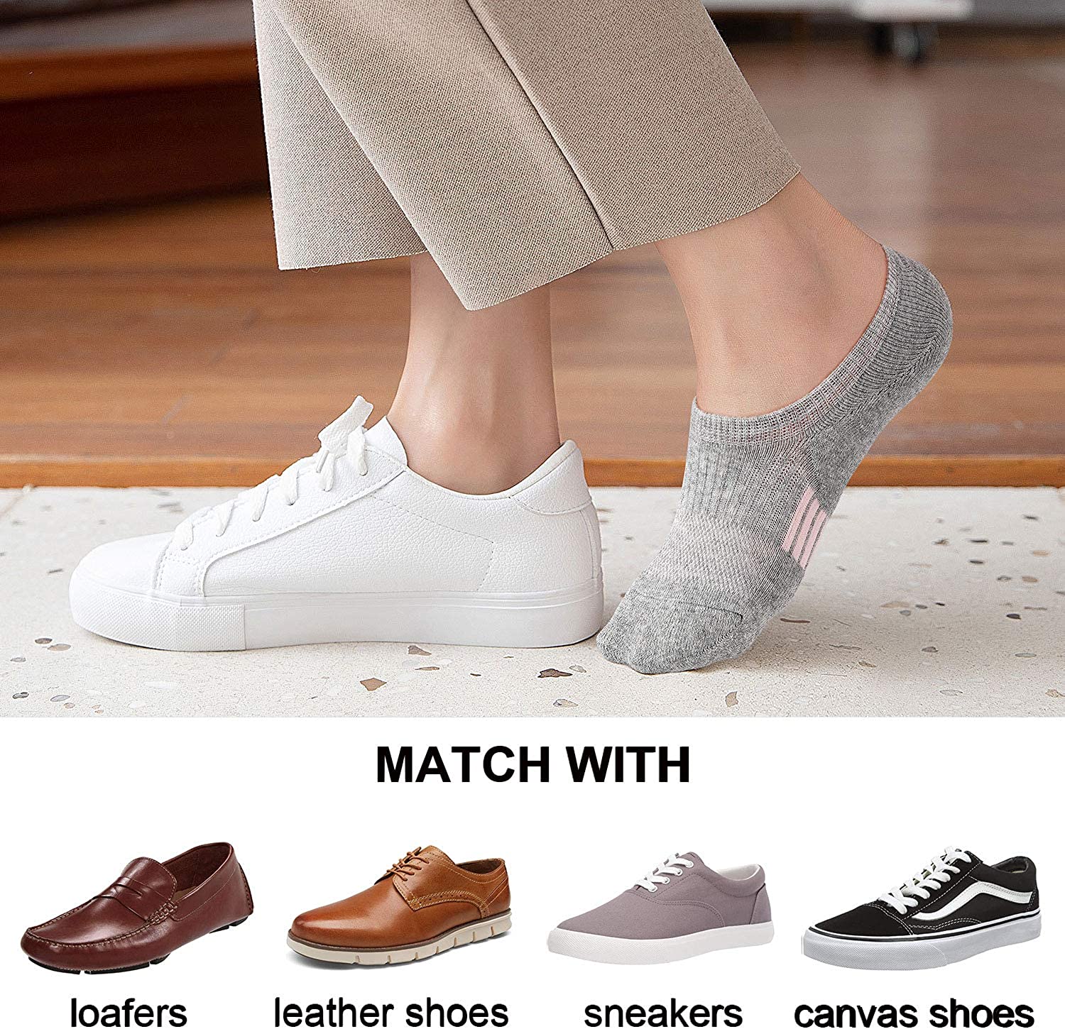 ARCH SUPPORT & CUSHION SOCKS - Upgraded cushion sole covers the entire bottom of the no show socks. Provide maximum cushioning space for the foot, reducing friction in sports or daily activities. Proper compression of the arch will keep your arch safe and stable while reinforced heel and toe provide outstanding durability.