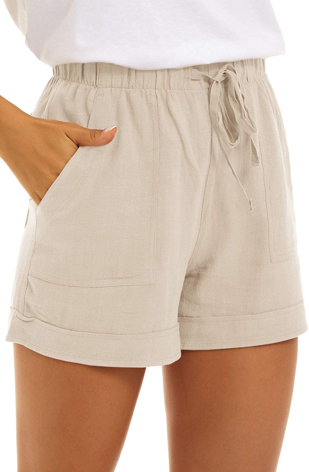 FANGJIN Womens Shorts Summer Casual Drawstring Elastic Waist Shorts Cotton Linen Hot Pant with Pockets Size S-XXL