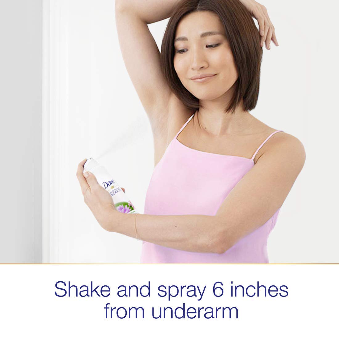 Who doesn't dream about a calm morning routine? Our calming ritual dry Spray Antiperspirant Deodorant waterlily & Sakura blossom is just the thing to keep you feeling calm, comfortable and confident first thing in the morning, without compromising on care and all-day protection. This Dove Nourishing secrets dry Spray Antiperspirant Deodorant for women will help you transform your daily self-care routines into luxurious rituals. Inspired by self-care rituals of real women, Made with 0% alcohol (ethanol) and enriched with Dove 1/4 moisturizers, this non-irritating antiperspirant formula leaves you with comfortable, beautifully soft underarms while keeping underarm sweat and odor at bay for up to 48 hours. But that's not all. This dry spray combines the sophisticated, sparkling scents of waterlily and Sakura blossom with comforting notes of sandalwood in a nature-inspired fragrance that's been created with responsibly sourced ingredients - so you can enjoy a calming ritual without compromising on care. It'll infuse your days with a small, but indulging ritual that's there for you and you alone, no matter what. For best results, Spray each underarm with two or three short bursts from about 6 inches away. Apply this Dove Antiperspirant Deodorant to dry skin after showering and enjoy fresh, comfortably dry skin from morning to night. This antiperspirant deodorant spray dries instantly, so you don't have to wait or worry.