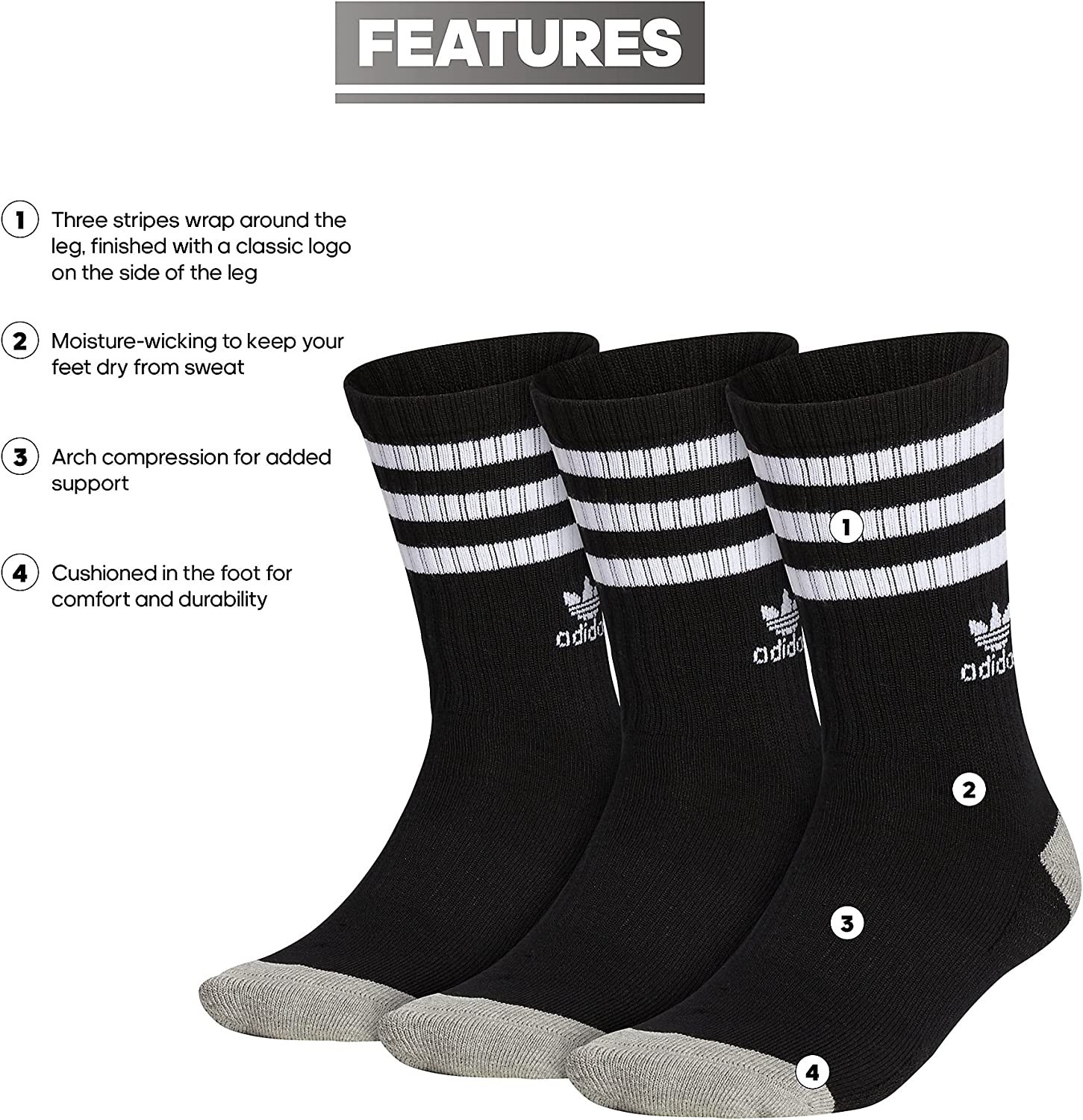 The roller crew has returned with that same classic 3 stripe style, but with a couple of additional features that include arch compression for support, and a traxion footbed inspired by the superstar tread pattern. moisture-wicking keeps your feet dry from sweat and cushioning in the foot gives you the comfort and durability you expect.