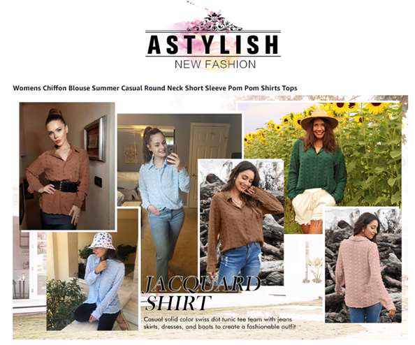 Astylish Women Pompom Button Down Shirt Casual Blouse Top