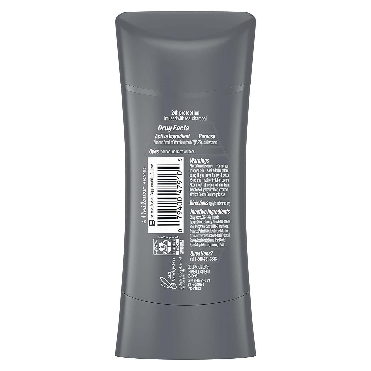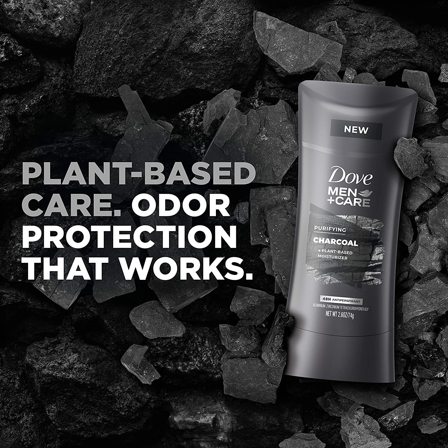 • NEW Dove Men+Care Charcoal Antiperspirant delivers long-lasting 48-hour protection against odor with a purifying scent derived from natural essential oils.