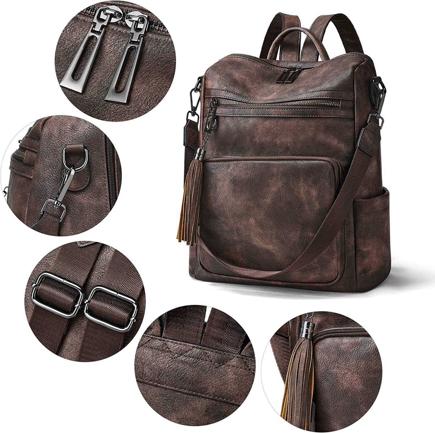 • 【HIGH-QUALITY MATERIAL】 This backpack purse for women is made of high-quality water-resistant, anti-scratch and tear-resistant soft PU leather, metal accessories, canvas long shoulder strap and fabric lining, and there is a cute tassel next to the front zipper pocket, all of these are fashionable and durable.