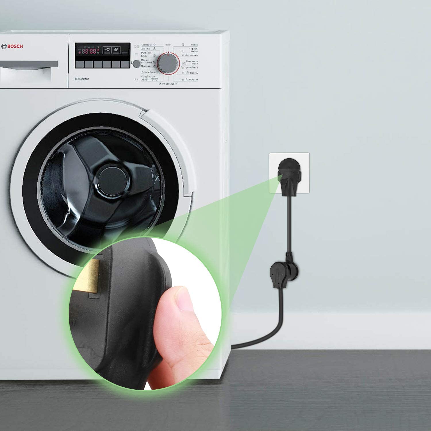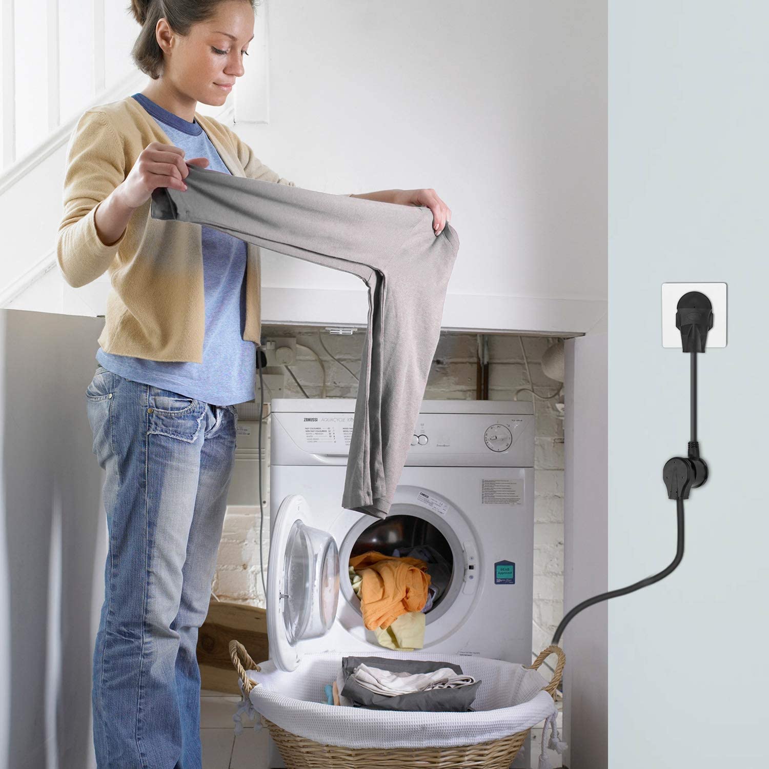 Just like the picture, the dryer adapter only needs to be plugged into a wall socket to use.