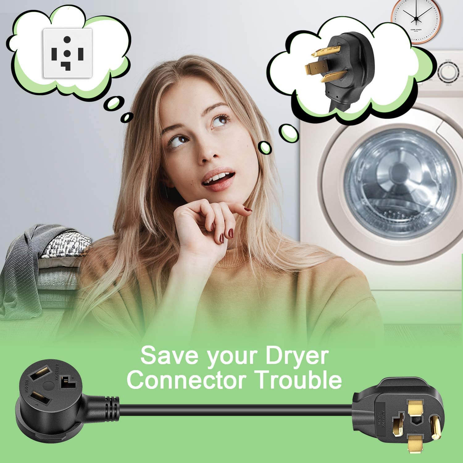 The dryer adapter is composed of 104 STW 10/3 AWG high-quality oxidation-resistant oil-free heat-resistant copper cores; it meets the UL 62 standard.