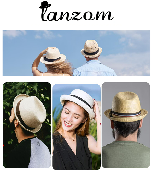 Upgrade your summer style with Lanzom's Straw Fedora Hat - the perfect Summer Beach Sun Hat for Men and Women who love outdoor travel, holiday, or beach playing.