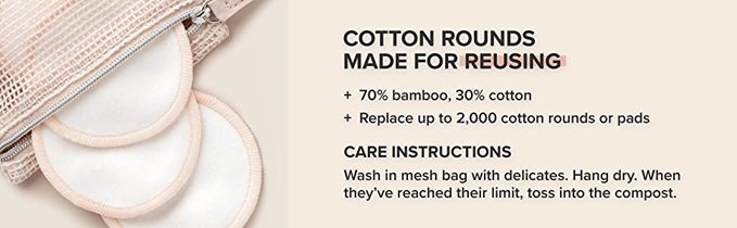 REUSE AGAIN & AGAIN: This set of 10 cotton rounds can replace up to 2,000 traditional, disposable cotton rounds or balls. Their durable designs can be tossed in the wash on laundry day then reused over & over. Once they’ve reached the end of their lifecycle, they are 100% compostable.