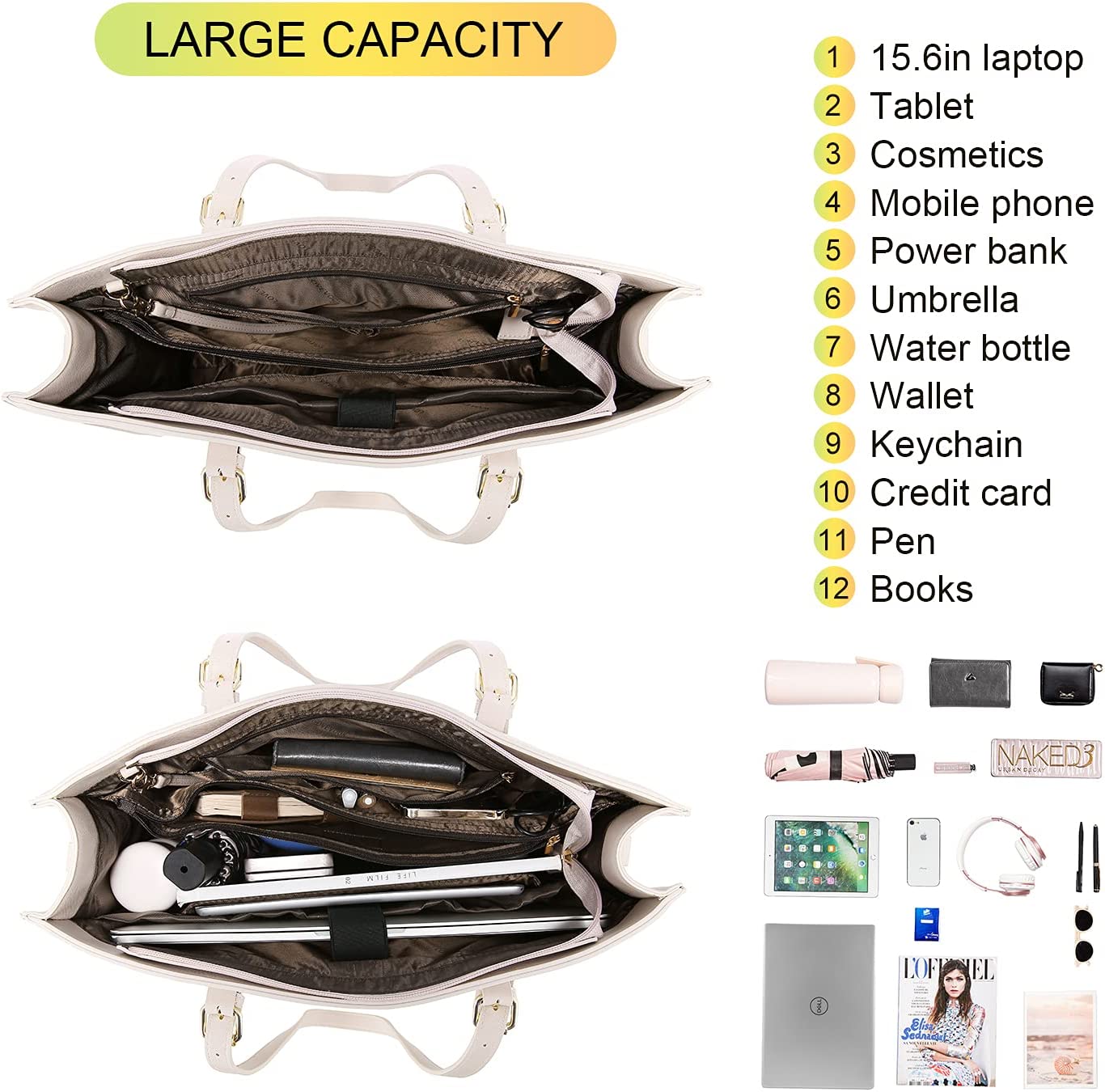 • 【Large Capacity Laptop Bag】The women laptop bag size in 17" L x 6" W x 11.5" H. The Computer bag is structured and roomy, and can accommodate a 15.6-inch laptop, thickened soft foam protective pad lining can fully protect your laptop from accidental impacts and scratches. In addition, the large-capacity shoulder bag can also store iPad, books, A4 files, mobile power, mobile phones, folders, passports, cosmetics, etc.It can carry all your essentials!