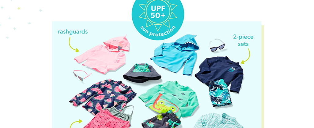 Protect your little one from the sun with this oh-so cute 2-piece swimsuit.
