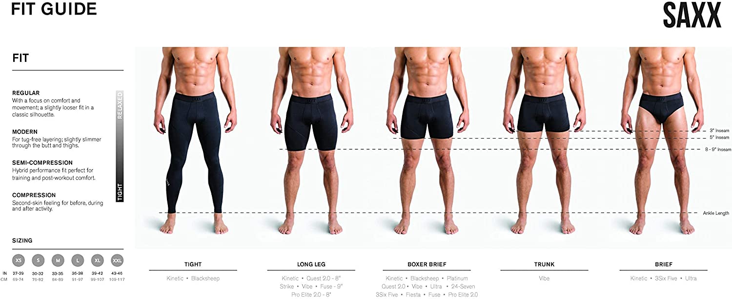 SLIM FIT: The form fitting SAXX underwear trunk is made from soft, moisture wicking fabric which makes them ideal for layering. Trunk briefs have no fly and are warn with ease thanks to the anti-roll waistband and 3” seam.