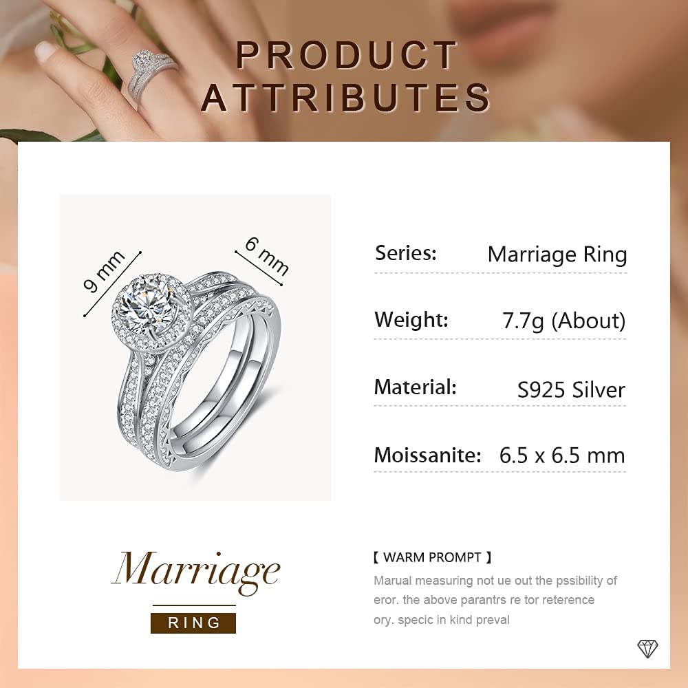 ?【 Diamond Size】➣Ring size 6/7/7.5/8/8.5/9,Main stone size: 6.5mm (1 carat round)/D color