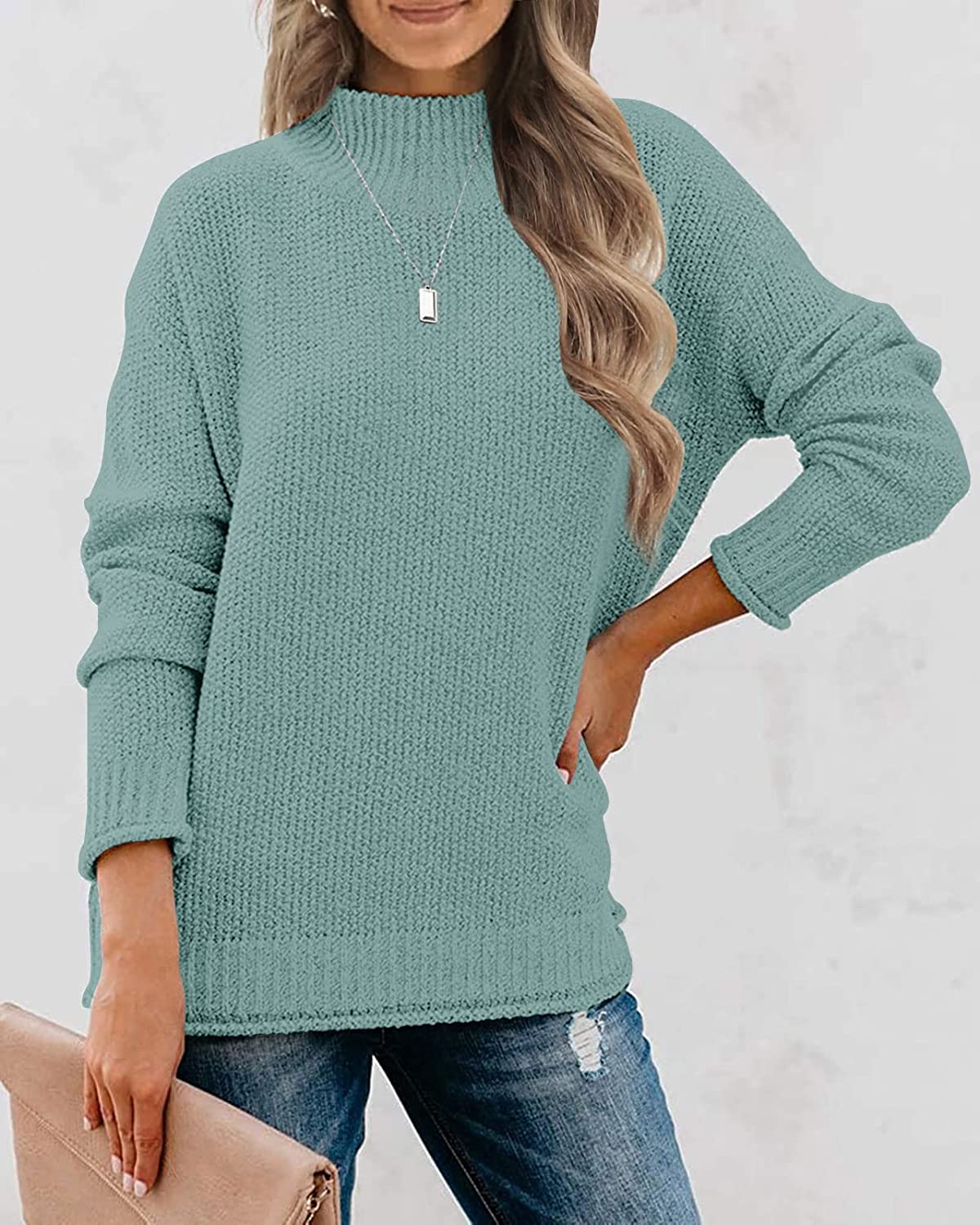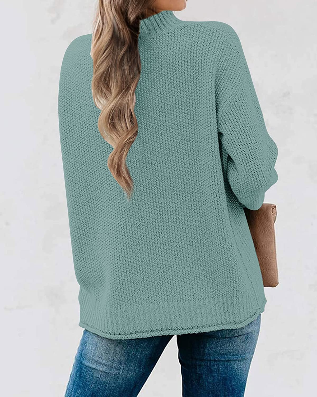 Unique Design: Women turtleneck sweater, casual loose-fitting, long sleeve, ribbed sleeve cuffs and hem, slightly curled design, simple solid color, trendy drop shoulders, stretchy and soft fabric offer cozy wear experience.
