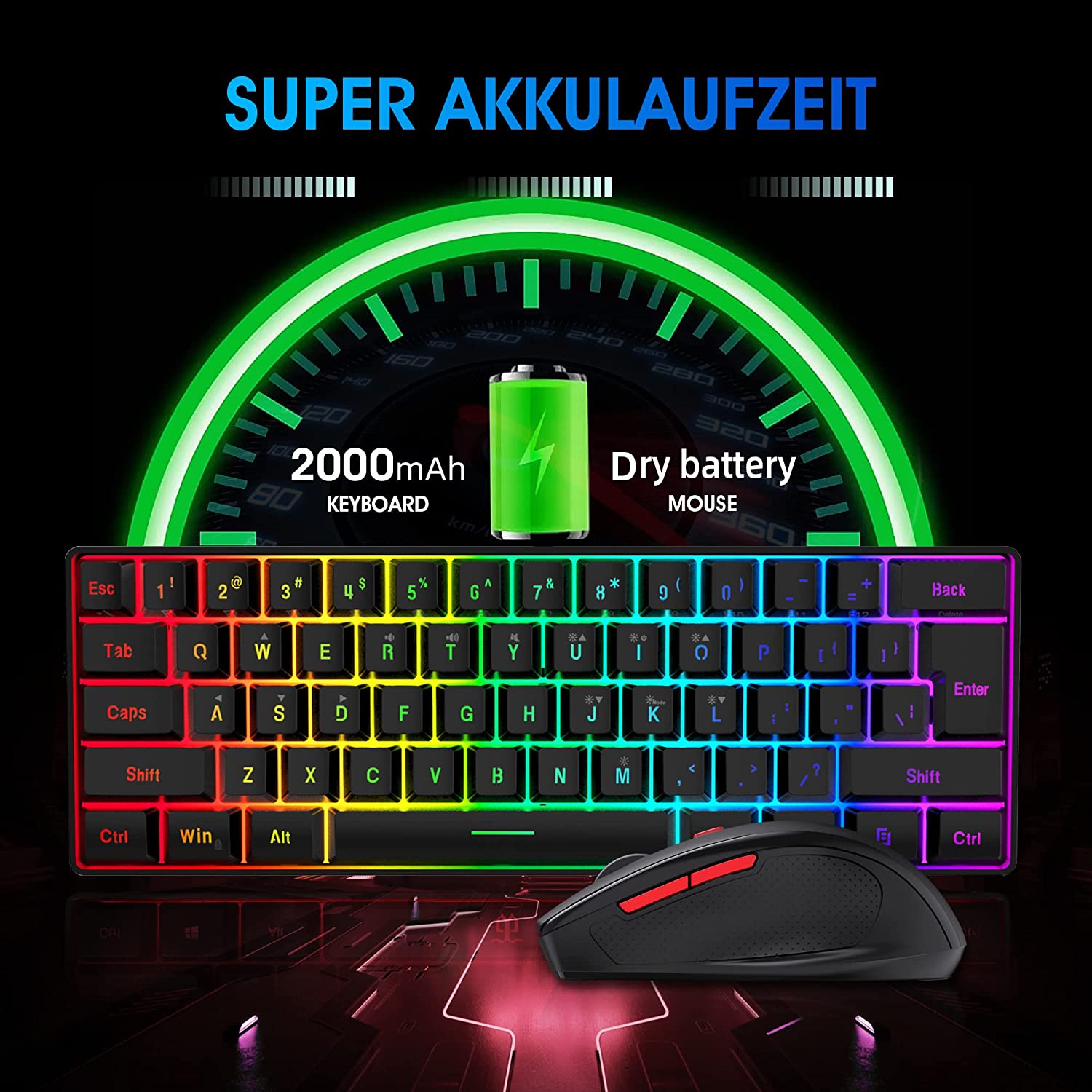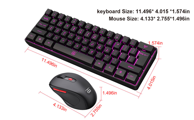 - 【Small Gaming keyboard and Mouse Combo】The scientific choice is a wireless compact 60% keyboard and a cute pocket-sized mouse, which strives to create a perfect combination of gaming and office. Slim and lightweight design makes it not occupy much space and provide convenience for travel.