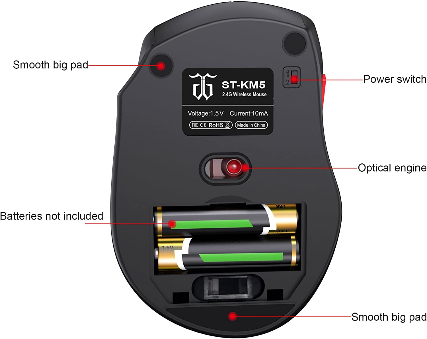 - Charging Instructions: There will be a little delay if the battery power of the keyboard and mouse is too low. Please use a DC:5V adapter to charge it. The charging indicator will turn off when fully charged. (If you use the USB interface to charge, due to the small current and large battery capacity, the charging time will be very long)