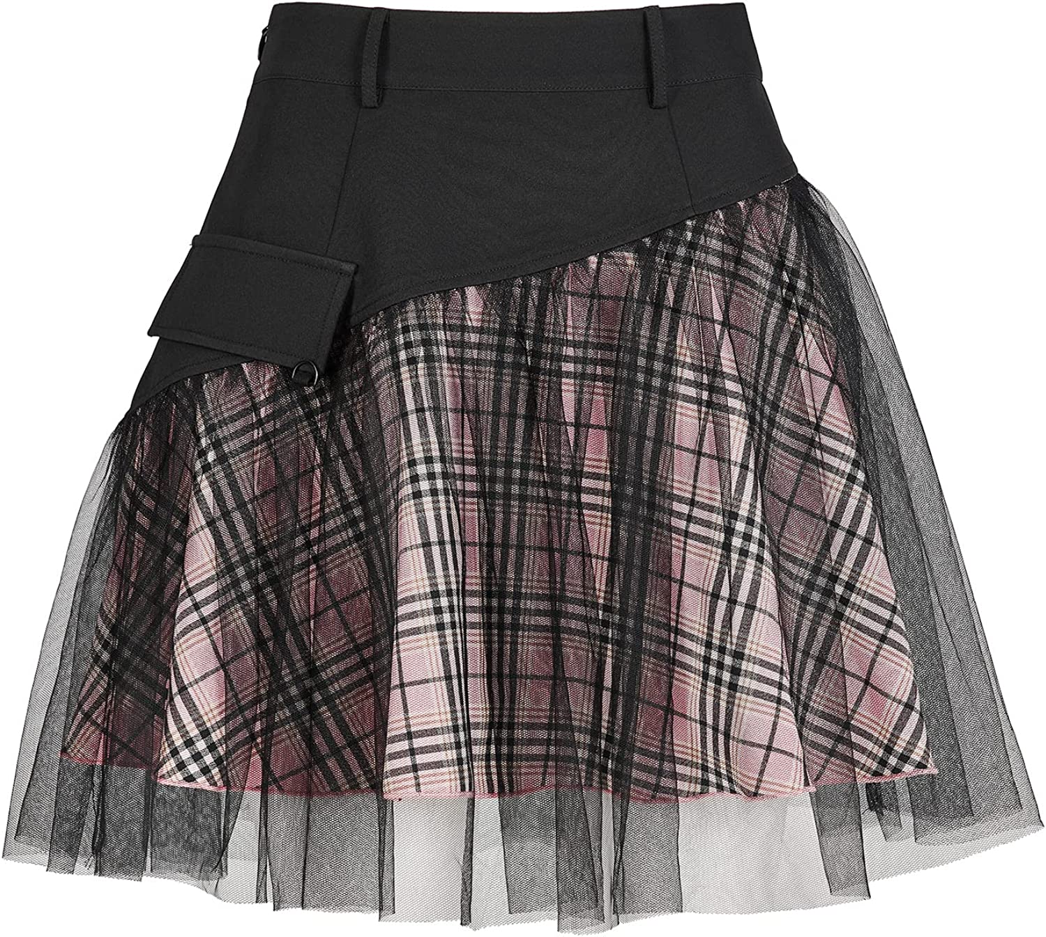 【Features】The high-waisted large-swing skirt can be matched with various belts, splicing of velvet fabrics and mesh yarns.