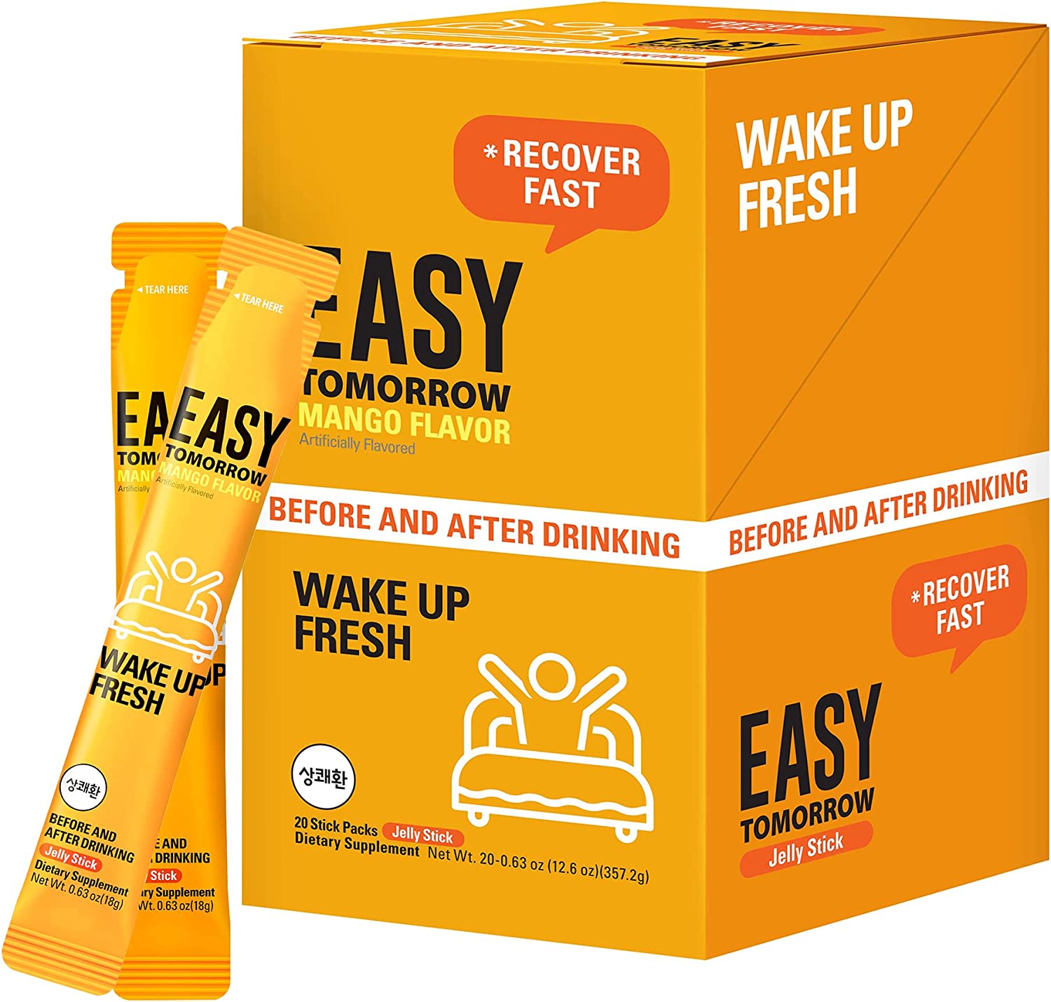 Easy Tomorrow Jelly Stick Before/After Drink Alcohol, After Party Recovery & Relief for Great Night & Better Morning, Party Vacation Aid, Liver Cleanse Detox, Mango Flavored, 상쾌환, 20 Packets
