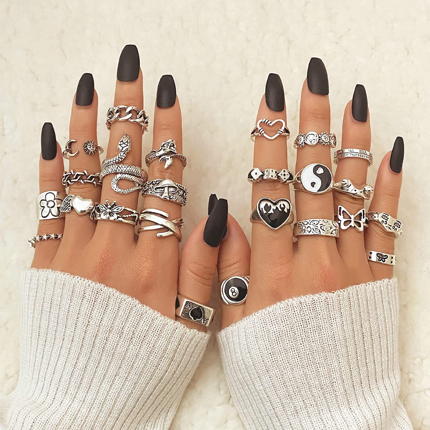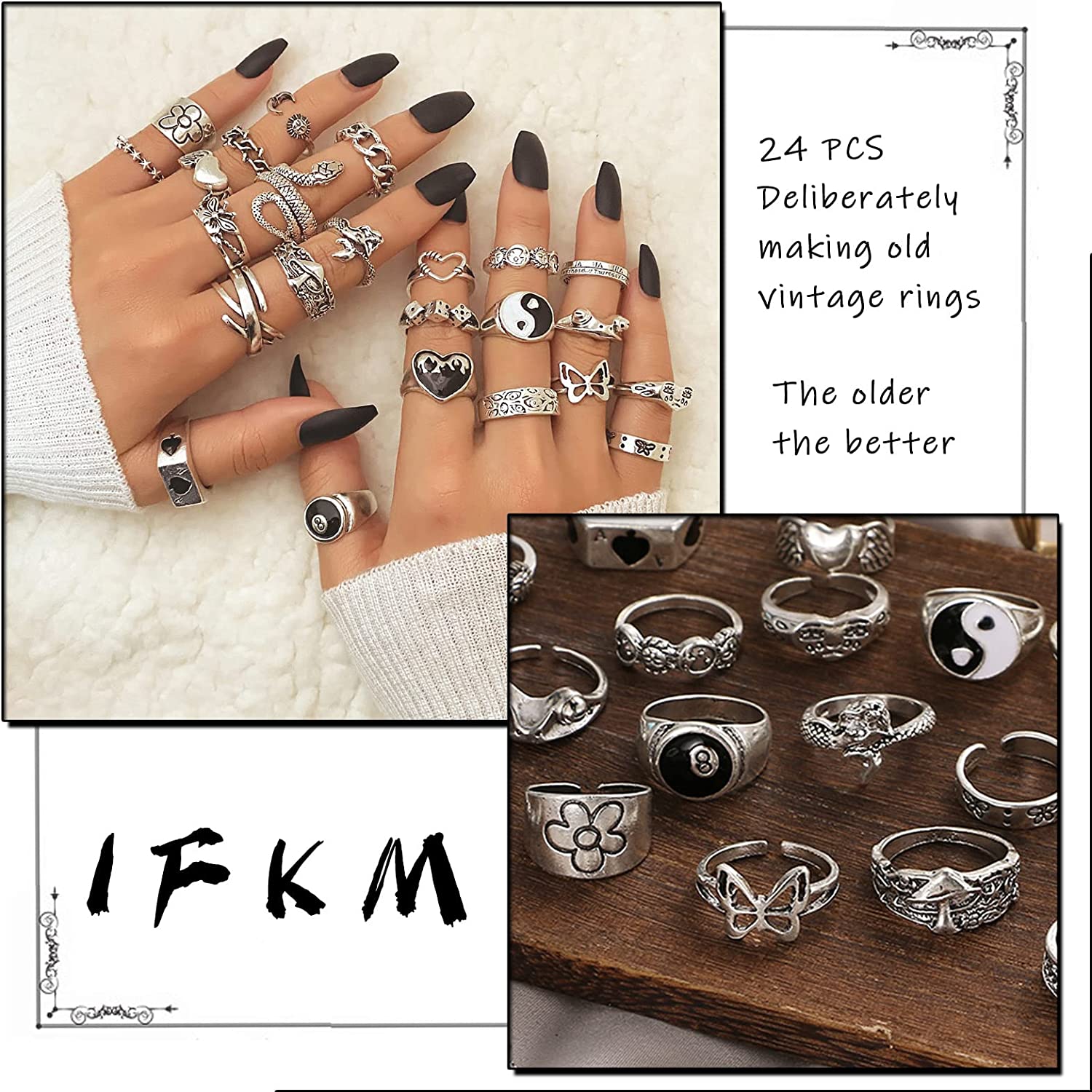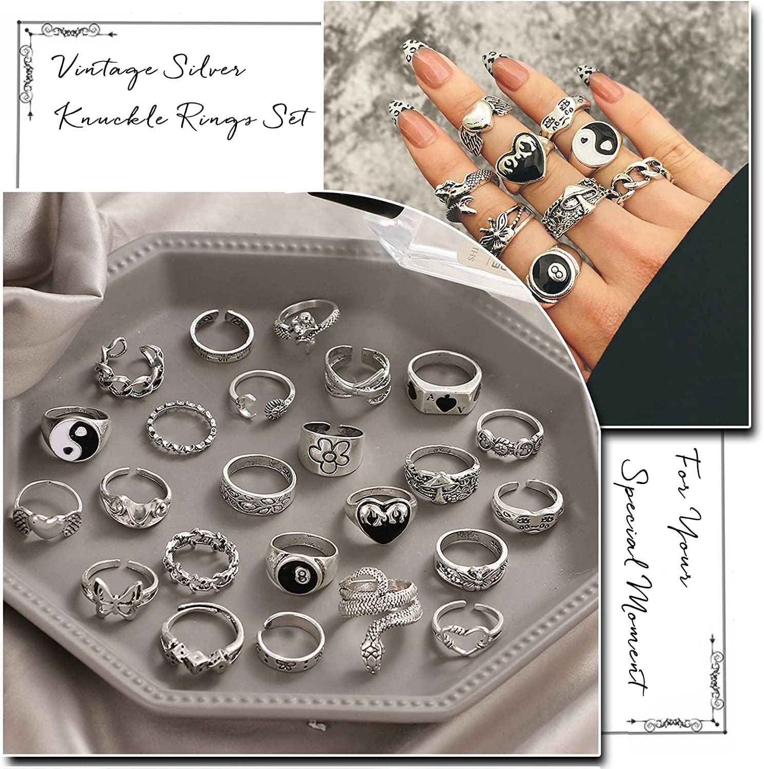 [VINTAGE BOHO RING KIT] You will get 24pcs knuckle rings with a combination of various styles such as snake ring, butterfly ring, twist ring, heart ring. Multiple ways of stacking makes you unique every day. Great value for your money.
