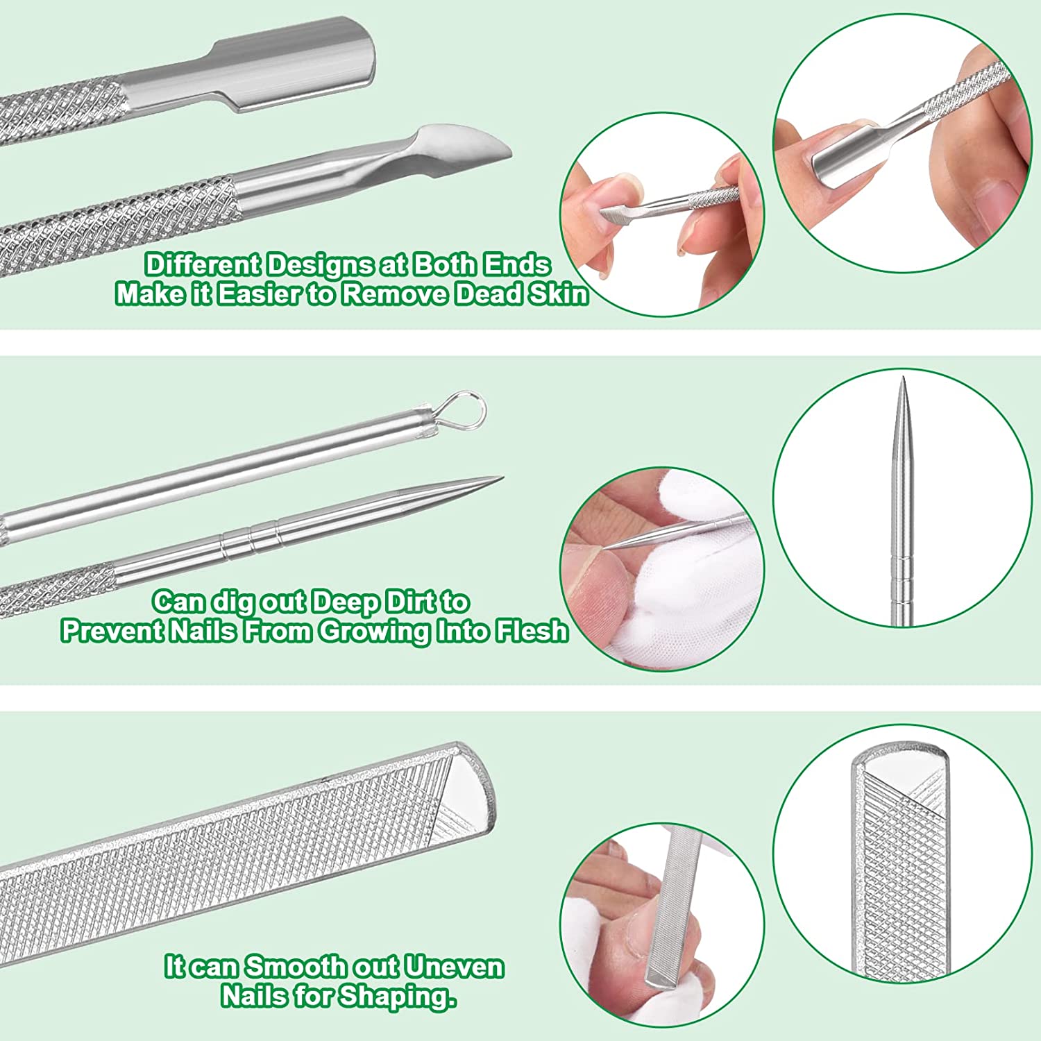 - ✔ CHEAP AND CONVENIENT: These nail tools can meet all of your nail care demands, even different nail shapes and thicknesses, get your perfect nail without any difficulty. Moreover, it would be a great idea to take care of your nails at home without having to go to nail salons. This sets of nail tool is definitely money-efficient and time-saving