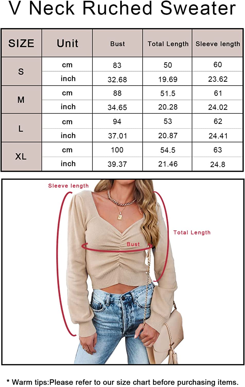 OBSESSED with This Cute Sweaters for Women:This Long Sleeve Sweater Features Long Sleeve,Sweetheart v Neckline,Solid Color,Shirred Front,,Ribbed Cuffs And Hem With Elasticity,Slim Fit And Slightly Revealing Belly Design.Pleated Design On The Front Chest Of This Knit Tops For Women Long Sleeve,Cute And Elegant Style. Lovely Knit Crop Top In Your Wardrobe.