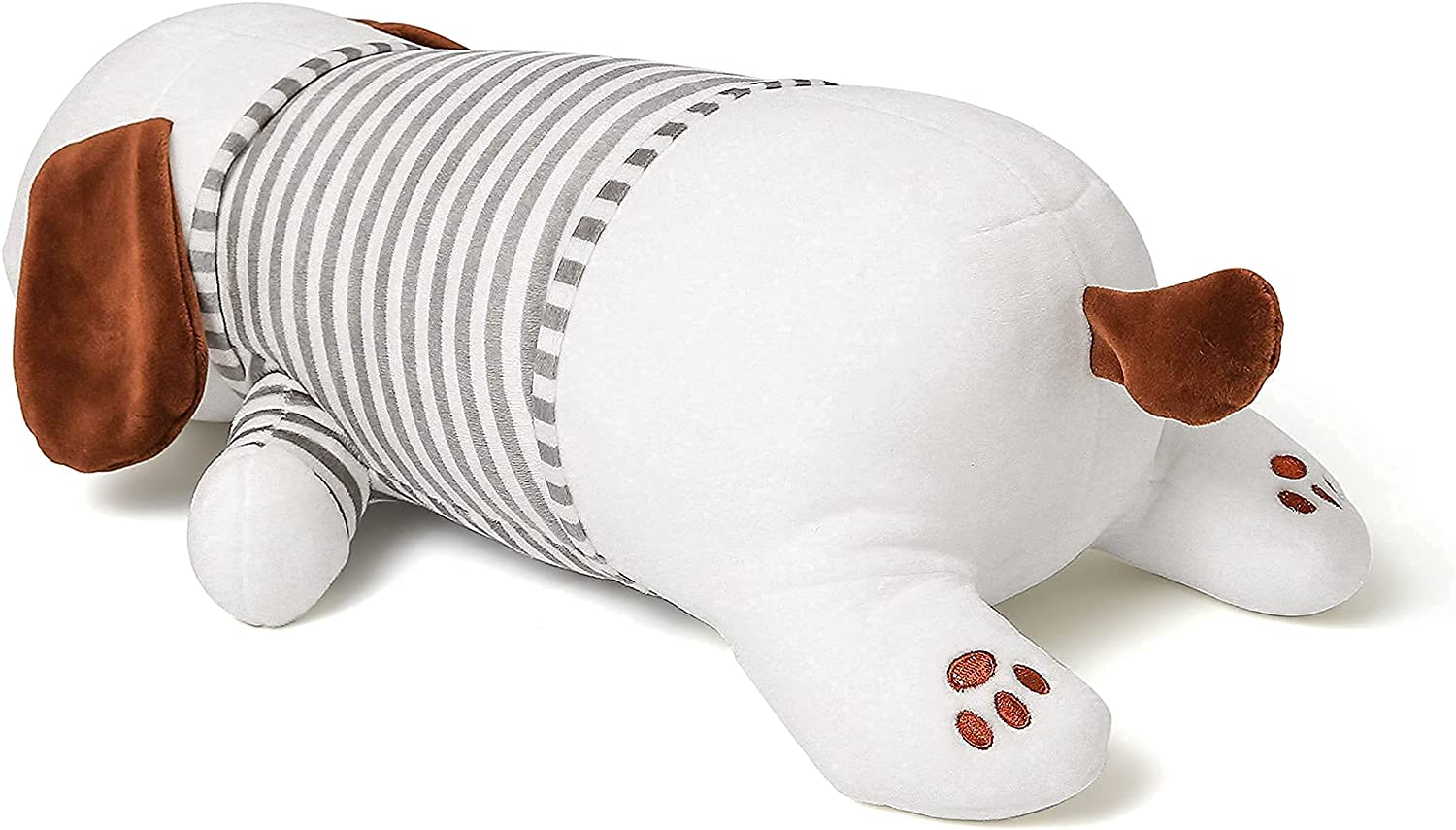 - THE PUPPY HAS EMBROIDERED PAW PRINTS AND EYES. And, the tummy is chubby and cuddly. it is perfect for a cuddle.