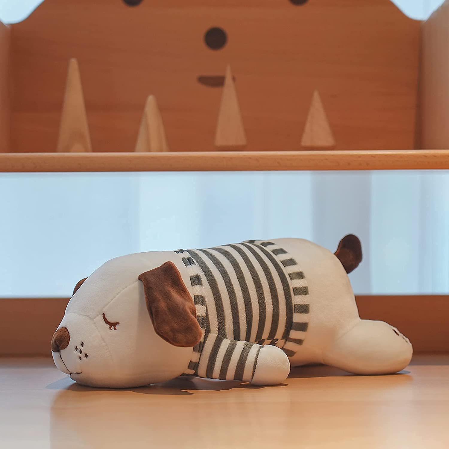 - Patting the plush toy gently on the back.