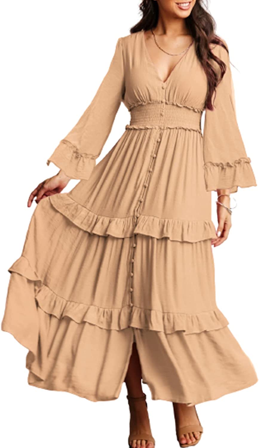 ?Style -Maxi Dresses for women Summer, Casual Summer Beach Boho Long Dresses,Soft stretchy high waist Dress,Flowy Long Dress,Elegant V neck Empire Waist pleated Party Dress,Maternity maxi dress.Suitable for Spring,Summer and autumn easy to carry out for many occasions-beach/casual/party/evening/wedding/home/Holiday ect