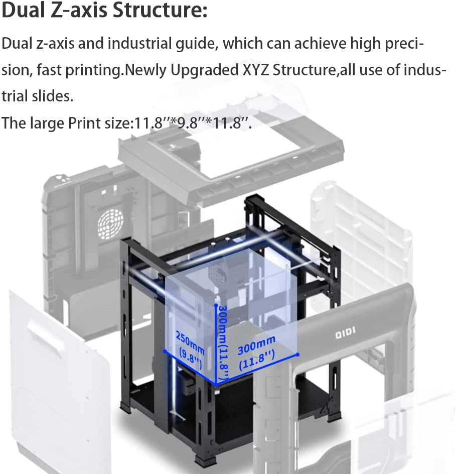 【Precision Manufacturing Process】QIDI TECH using industrial-grade manufacturing, dual z-axis and industrial guide, can achieve high precision, fast printing. Upgrading the XYZ structure, all use of industrial slides. PEI printing plate, solve printing models warp and other problems.The 3d printer’s structure is developed for the effective and accurate printing of carbon fiber.Meanwile, printing other common filaments, the speed can be increased to 120cc per hour.