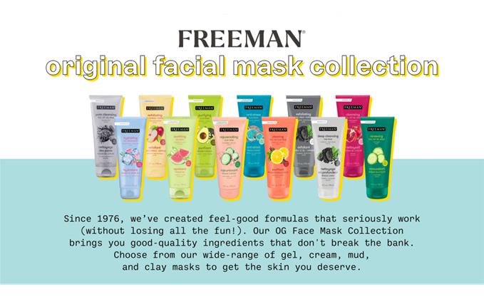 Looking to do a spa night with you and your friends or wanting to restock your favorite skincare essentials? This pack of pore minimizing, and oil absorbing face masks include a variety of skin benefits and scents that will keep your skin looking radiant and glowing! Regulate your self care routine by applying these cream, clay, and gel Freeman masks that are easy to apply and remove. For over 40 years, Freeman Beauty has been on a mission to make nature inspired, fun, high-performing specialty beauty products accessible to the younger beauty-involved customer. With a portfolio of six beloved brands, we offer a wide range of facial masks, dry shampoo, specialty bath & body, and foot care products that provide a spa-like experience in the comfort of your own home. Freeman Beauty was launched in 1976 with a vision to provide nature inspired hair care, facial masks, and bath & body essentials. Since then, Freeman Beauty has become the leader and recognized expert in facial masks with a variety of innovative, on-trend, and award winning products! Our brand portfolio includes Freeman Feeling Beautiful facial masks, Freeman Beauty Infusion serum-infused facial masks, Freeman Feeling Legendary facial masks for men, Freeman Bare Foot pampering foot care products, Psssst! the TRUE Original Dry Shampoo, and c.Booth bath & body care products.